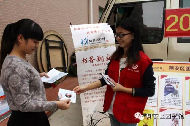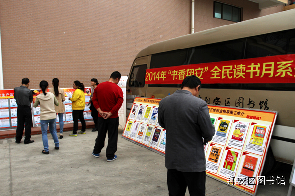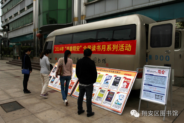 此次活动是翔安区图书馆举办的2014年“书香翔安”全民读书月系列活动之“书香企业--走基层 送服务”活动。图书馆流动服务车以方便、快捷、灵活的服务方式,走出馆门,开进企业、军营、学校、社区,为广大市民读者提供服务,拓展了区图书馆有效服务范围,丰富了边远地区群众的文化生活,在全区营造了“好读书、多读书、读好书”的良好社会氛围和文明风尚。