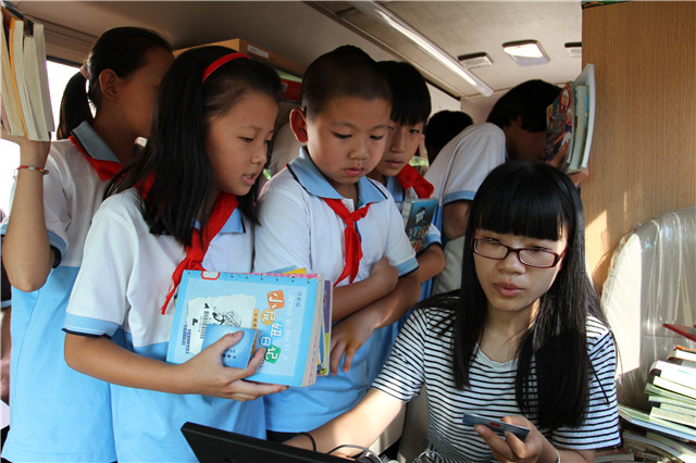 10月12日,翔安区图书馆组织馆员和文化志愿者走进翔安区彭厝学校,为学校师生送去服务,受到了他们的热烈欢迎。图书馆工作人员为学校教师和学生提供办证、借阅服务,并向学校师生开展“掌阅翔图”翔安区移动图书馆宣传、百种青少年优秀图书推介、百种抗战经典图书推介等。