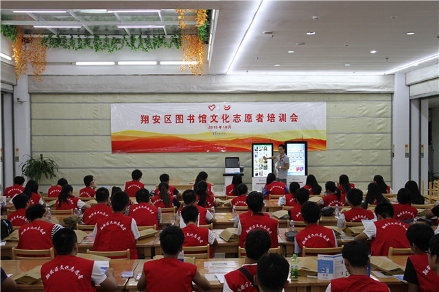 10月23日下午,翔安区图书馆举办2015年大学生文化志愿者培训会,来自厦门大学、海洋学院、技师学院、南洋学院、华天涉外学院、安防学院等高校的60多名志愿者骨干参加培训。