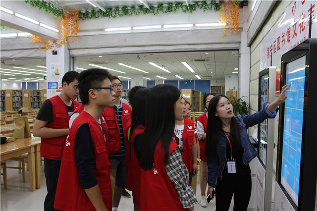 本次培训由流通服务部郑福龙为志愿者们介绍翔安图书馆概况、规章制度、馆藏分布、办证流程、书刊借阅和图书上架等,着重从志愿服务范围、服务方式、服务内容及服务要求等进行讲解和培训。除日常开放管理外,流通服务部张逸群还介绍了“掌阅翔图”移动图书馆APP、RFID自助借还书系统、歌德电子书借阅机、博看报刊阅读机、博看期刊阅读机的操作方法,以及翔安区图书馆新构建的现代智慧图书馆信息移动服务平台的推广和应用。讲解结束后,由图书馆工作人员带领志愿者们熟悉图书馆布局和设备,进行实际操作演练,使他们能迅速进入角色,更好地为读者提供志愿服务。