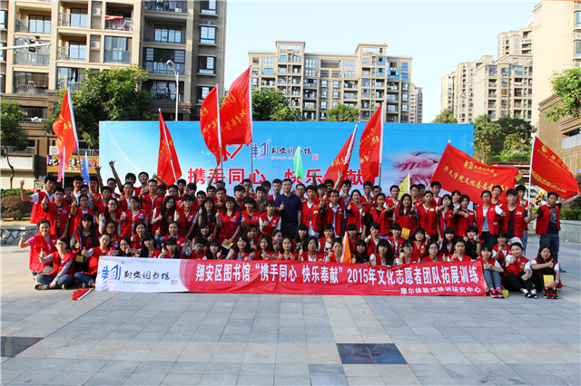11月22日,翔安区图书馆在文化中心广场举办“携手同心 快乐奉献”2015文化志愿者团队拓展训练,有100名翔安区图书馆文化志愿者骨干参加培训,他们主要来自翔安6所高校。