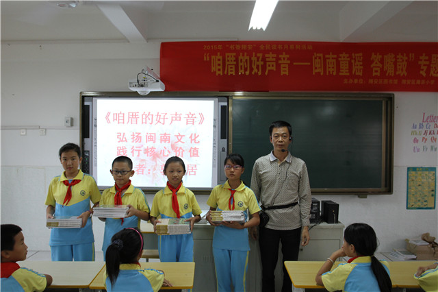 此次讲座是翔安区图书馆举办的2015年“书香翔安”全民读书月系列活动之“博学教室”专题讲座,也是“公共文化服务校园行”的活动内容之一。接下来,闽南童谣专题讲座作为全民读书月系列活动还将在其他中小学举办,让更多青少年继承和弘扬闽南文化,并在潜移默化中传播社会主义核心价值观,倡导社会文明生活新风尚。