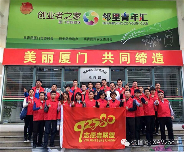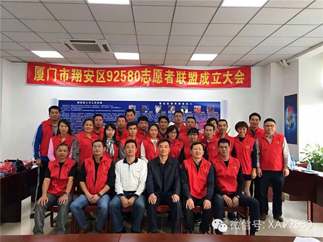 11月27日,由翔安区相关政府部门以及社会团体、民间组织等首批22支志愿服务队组成的“厦门市翔安区92580志愿者联盟”在区创业者之家成立。11月30日,在翔安区创建新兴街“文明行为示范街”现场推进会上,市委宣传部副部长、市文明办主任黄鹤麟为“92580志愿者联盟”授旗,同时,联盟成员单位代表还进行了宣誓。