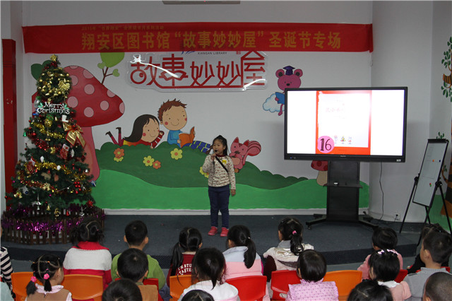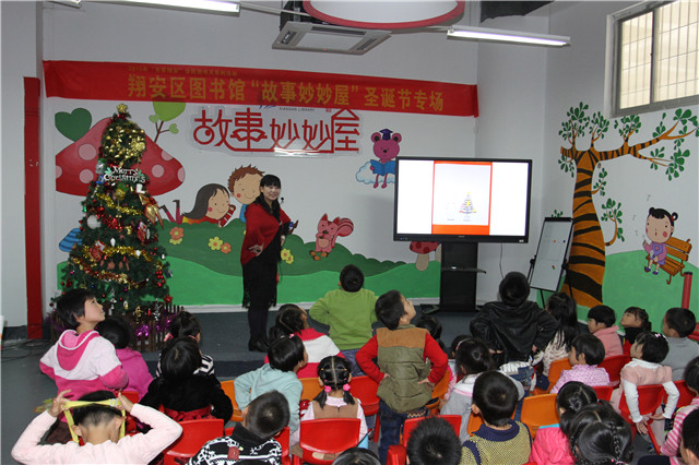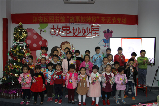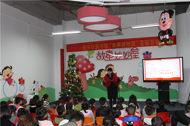 12月20日下午,翔安区图书馆举办了一场温馨浪漫的 “故事妙妙屋” 2015年圣诞节专场活动。老师首先为小朋友们讲述了《鼠小弟的圣诞节》的绘本故事,让小朋友们在感受节日氛围的同时聆听“可爱的鼠小弟”温馨感人的故事。故事结束后,老师指导小朋友们用毛根、筷子制作圣诞树,并书写自己的圣诞心愿卡。小制作结束后,小朋友们纷纷与主办方精心布置的圣诞树合影留念,让他们在浓浓的圣诞节氛围中感受到了幸福和浪漫。