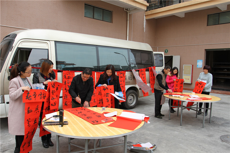 喜迎新春,张贴春联抒发了人们对辞旧迎新的美好期盼,是中华民族传承千年的习俗。1月13日,翔安区图书馆组织馆员来到厦门澎澎食品公司,开展“进企业写春联 送祝福暖人心”活动,邀请洪水郑老师等多名翔安区本土书法家,现场免费手写春联赠送给企业员工,并精心设计与翔安地名、新春佳节有关具有本土特色的有奖猜灯谜活动,让广大企业员工感受到浓浓的新春氛围。
