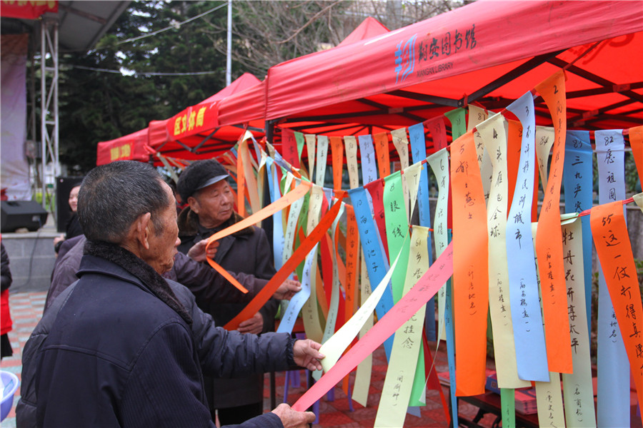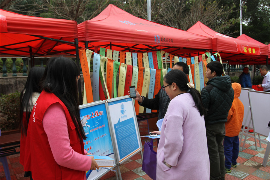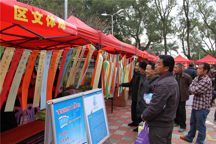 1月20日,翔安区2016年“文化、科技、卫生、法律”四下乡启动仪式在新店镇茂林社区村部广场举行。翔安区图书馆在现场开展了“掌阅翔图”移动图书馆推广、图书馆宣传等配套活动,并精心设计了与翔安区地名有关的具有本土特色的灯谜活动,让居民群众们参与其中,受到了广大社区群众的热烈欢迎和积极参与。