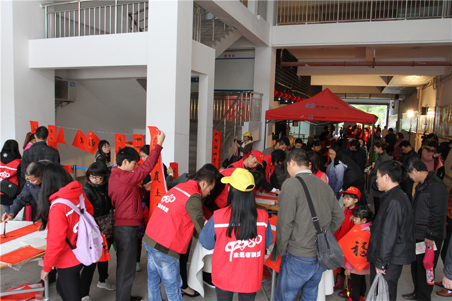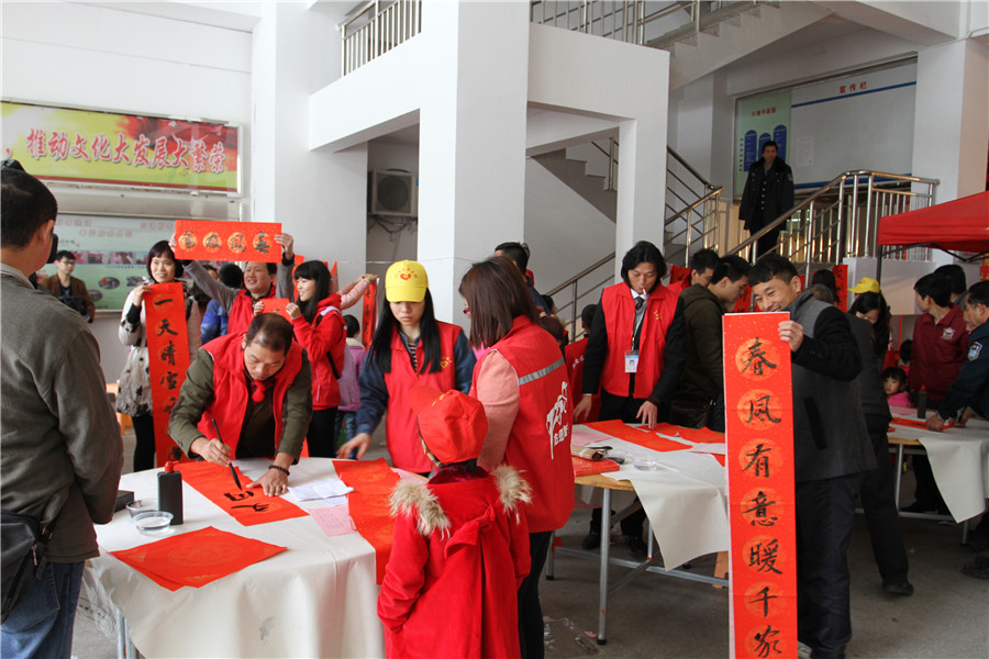 活动现场墨味飘香,近十位来自翔安区的本土书法名家及92580志愿者联盟的志愿者在这里挥毫泼墨,现场免费手书春联送给到场群众,一幅幅充满喜庆吉祥、红红火火的春联送上了浓浓的新春祝福,图书馆还精心设计了与翔安区地名有关的具有本土特色的灯谜活动,让群众们参与其中。