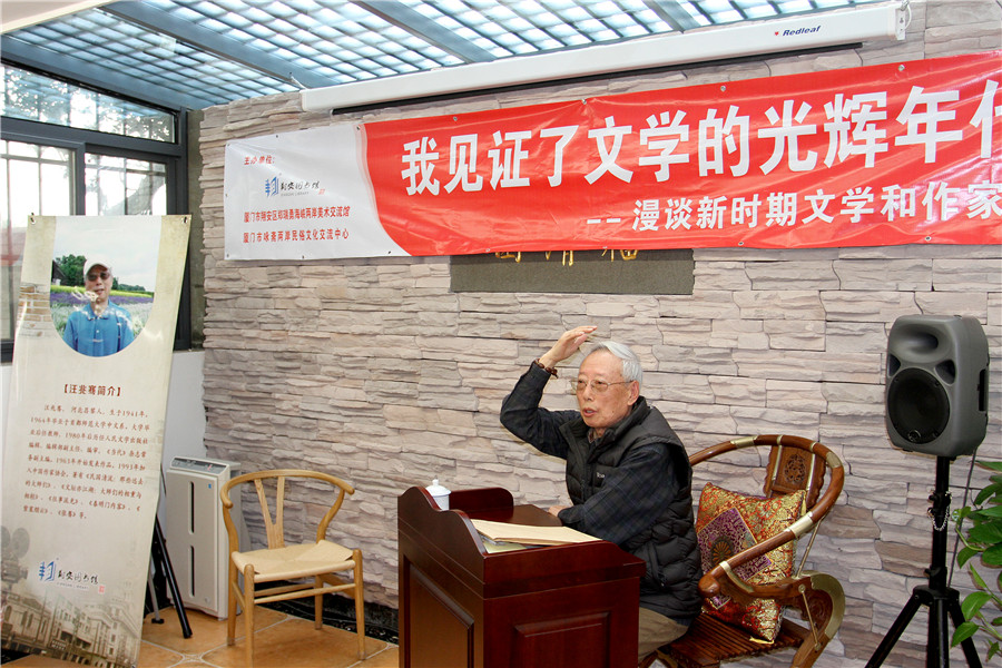 3月26日,在翔安区大嶝街道田墘社区“希元书院”,翔安区图书馆与郑瑞勇美术馆、厦门市咏斋两岸民俗文化交流中心共同举办了主题为《我见证了文学的光辉年代——漫谈新时期的文学和作家》专题讲座,专程从北京邀请了中国人民文学编审、原《当代》杂志常务副主编汪兆骞老师主讲。这次艺术盛宴,吸引了来自本社区的居民听众和慕名而来的翔安、同安、南安、金门、厦门岛内以及驻军官兵的文学爱好者参与。特别是原金门县长李炷烽、原金门立委吴成典在翔安区金门同胞联谊会会长宋奇盈的陪同下,也前来聆听汪老师的文学讲座,近距离领略了大师的精彩演讲。讲座结束后,区图书馆还开展了汪兆骞老师现场签赠,向到场嘉宾赠送了汪兆骞的著作《民国清流》和《大师们的相重与相轻》。3月27日上午,汪兆骞老师继续举办第二场讲座,主题为《民国清流,那些远去的大师》。