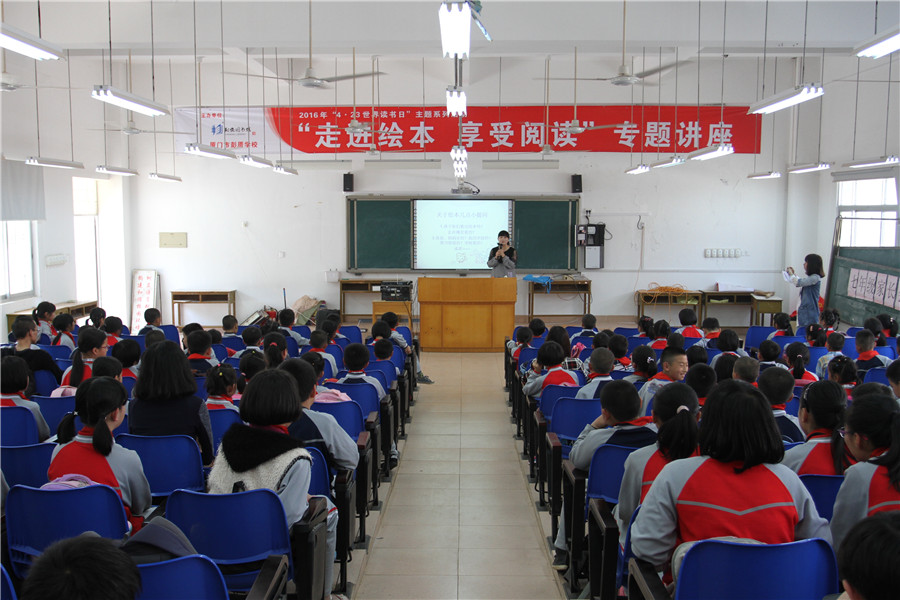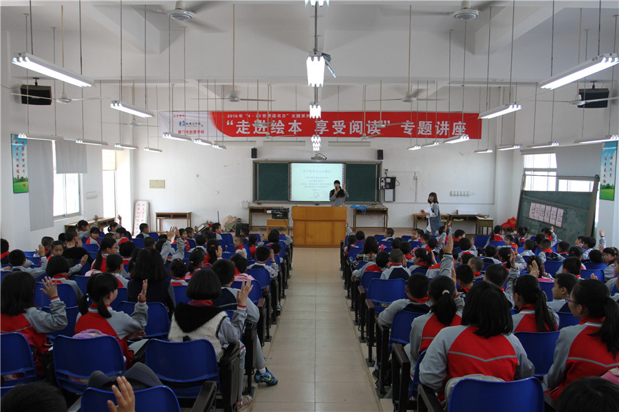 此次讲座是翔安区图书馆举办的2016年“喜阅”4.23世界读书日系列活动之“博学教室”专题讲座,也是“公共文化服务校园行”的活动内容之一。方老师通过极富亲和力地讲述《大脚丫跳芭蕾》等几个绘本小故事方式引入,围绕小学生为什么要读绘本、读绘本的好处、怎们阅读绘本,深入浅出地讲解,将有效激发学生们阅读绘本的兴趣,培养他们的阅读学习能力。方老师还为师生们推荐了一批适合小学生阅读的优秀绘本,希望他们通过阅读,切身体会走进绘本的“喜阅”,享受阅读的乐趣。