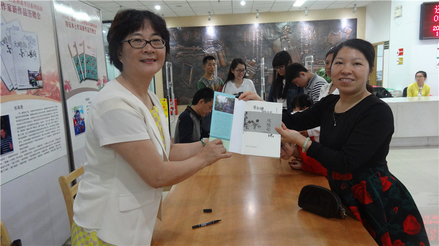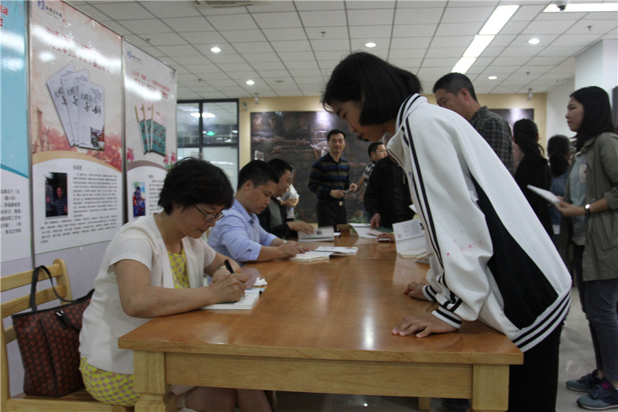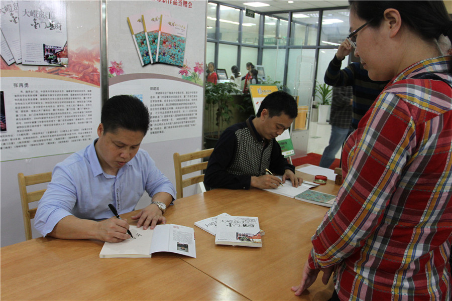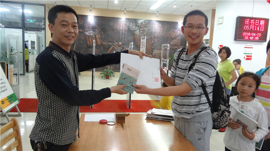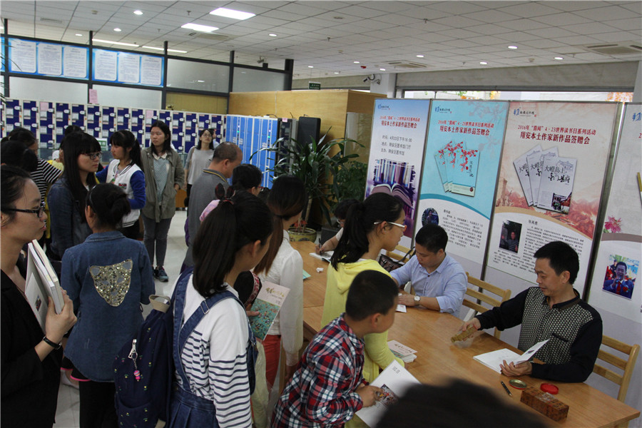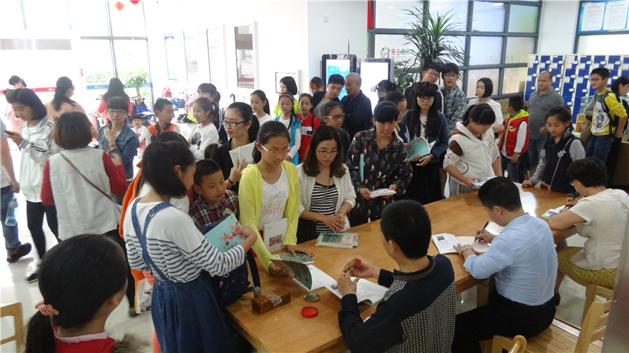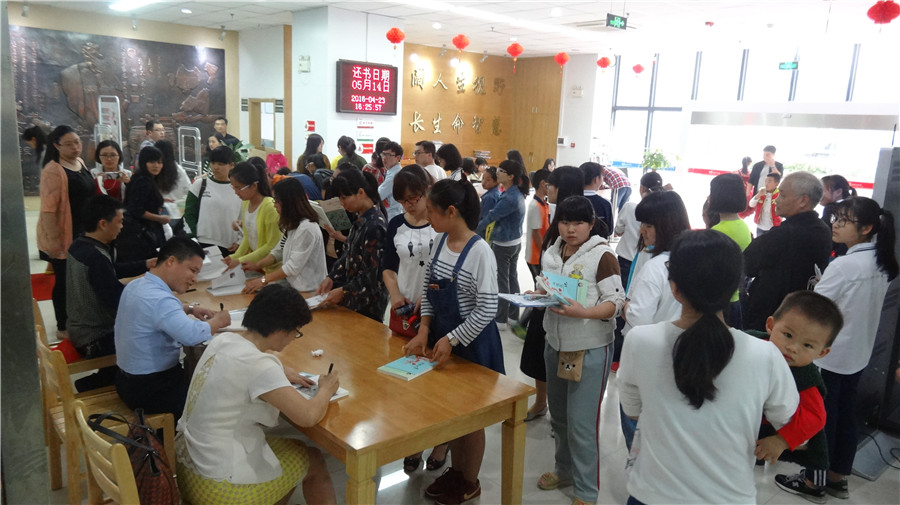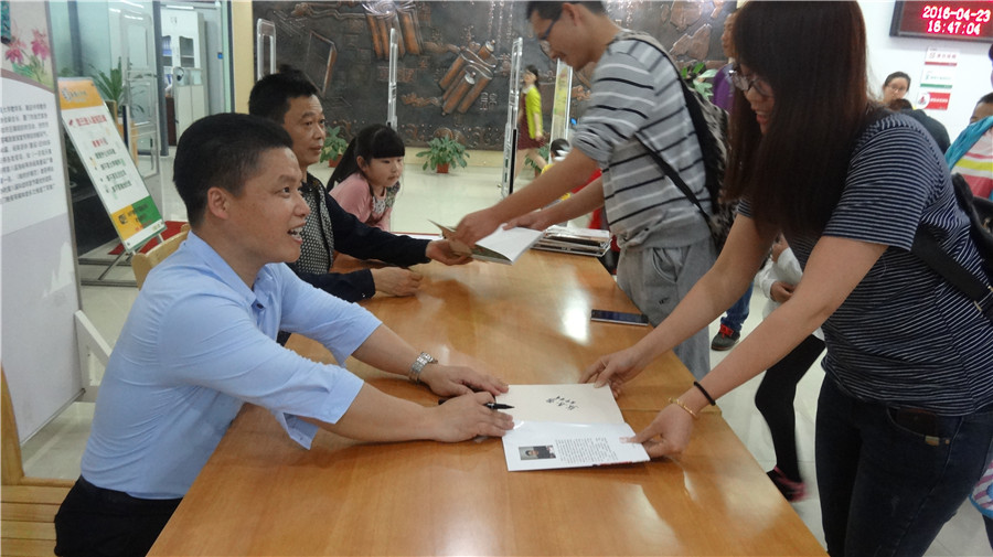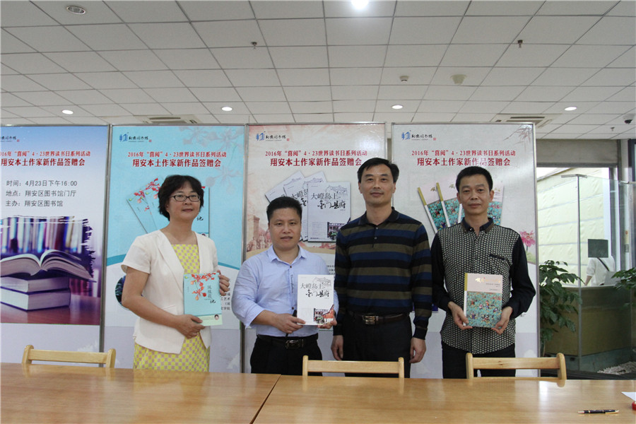4月23日下午,翔安区图书馆在门厅举办本土作家作品签赠会。签赠会邀请了张再勇、蔡伟璇、郭建居三位翔安本土作家。三位作家的作品风格各异,有研究金嶝文化、侵华历史的文史著作《大嶝岛上的金门县府》;有收入以厦门为故事背景地的散文小说《凤凰花地》;以及蕴含社会主义核心价值观、宣传新风气的闽南童谣答嘴鼓《咱厝的好声音》。签赠现场气氛热烈,上百名忠实读者慕名前来与本土作家近距离接触。
