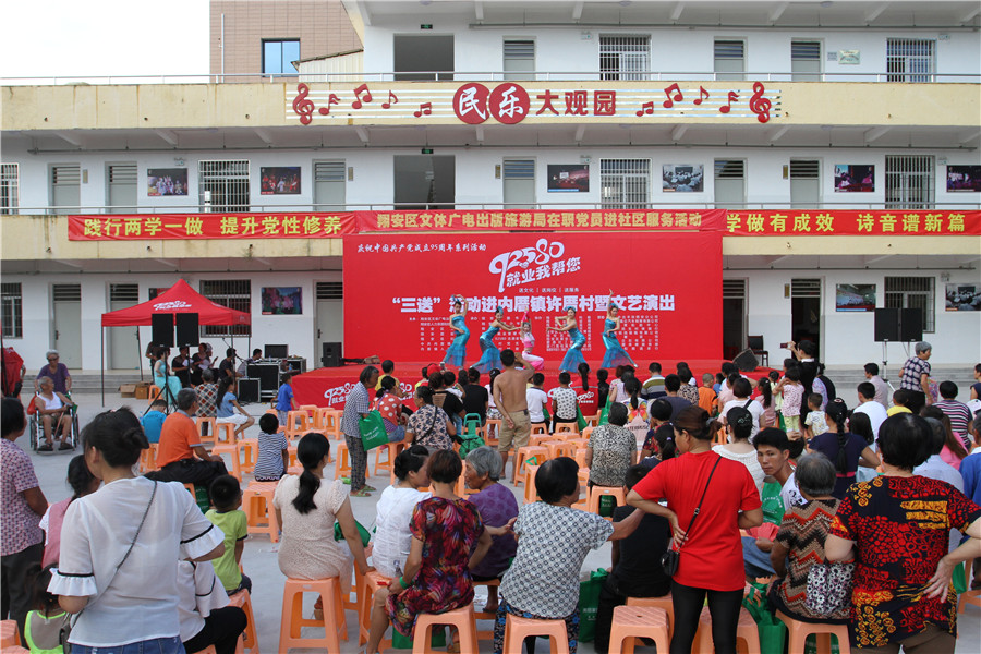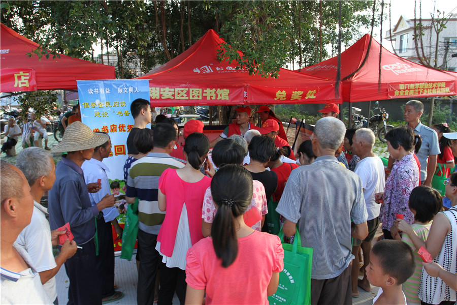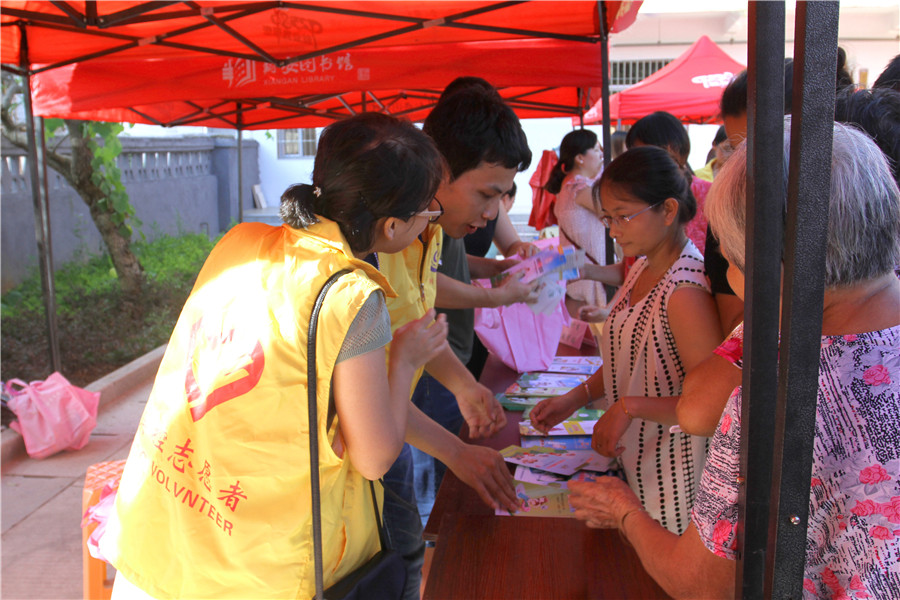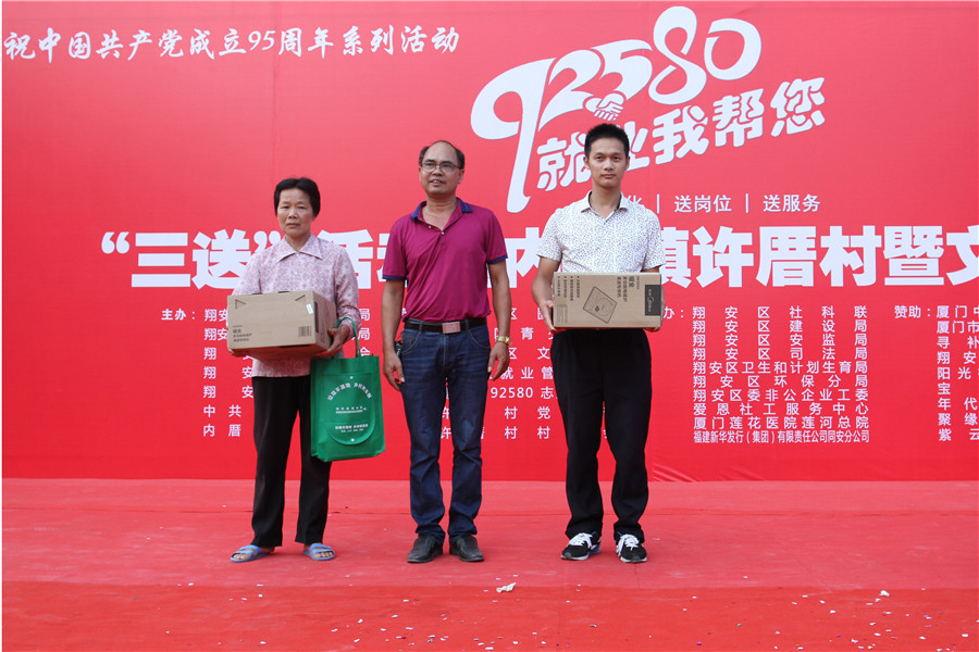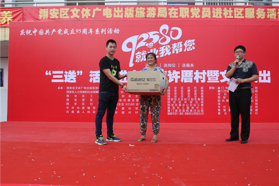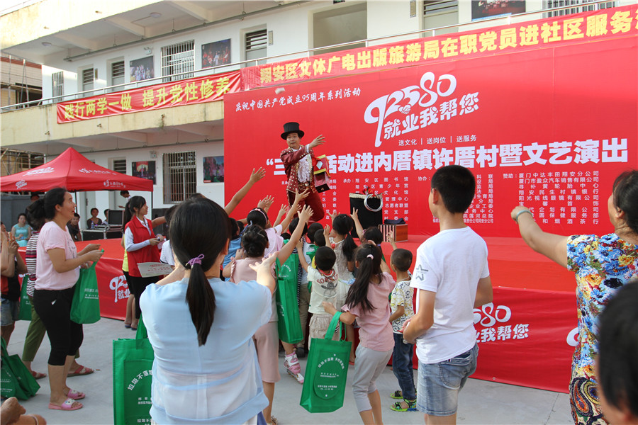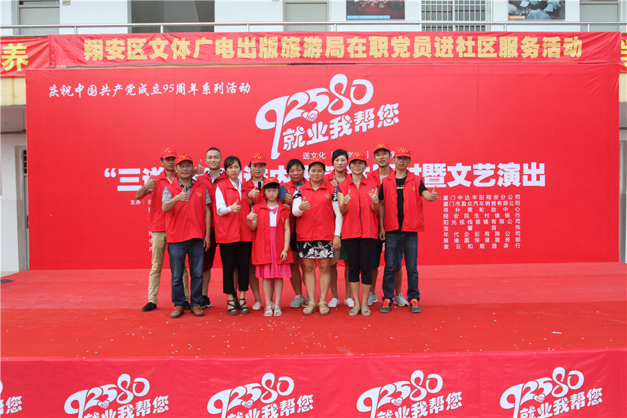 7月5日,翔安区图书馆在内厝镇许厝村文化园举办翔安区 92580就业我帮您“三送”进社区文化下乡活动,亦是庆祝中国共产党成立95周年暨翔安区文体广电出版旅游局在职党员走基层服务活动。