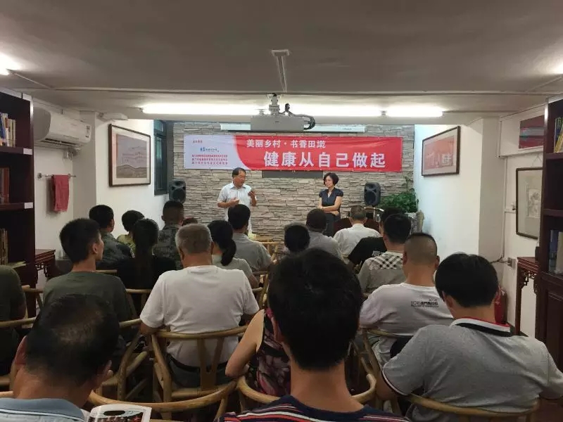 2016年7月23日下午,翔安区图书馆在翔安区大嶝街道田墘社区“希元书院”举办“美丽乡村·书香田墘”—— “健康从自己做起”专题讲座。讲座由盟员、全国相约健康社区行巡讲专家、厦门市疾控中心健康教育所所长田丁主讲。社区居民和附近驻军部队战士40多人参加了讲座。