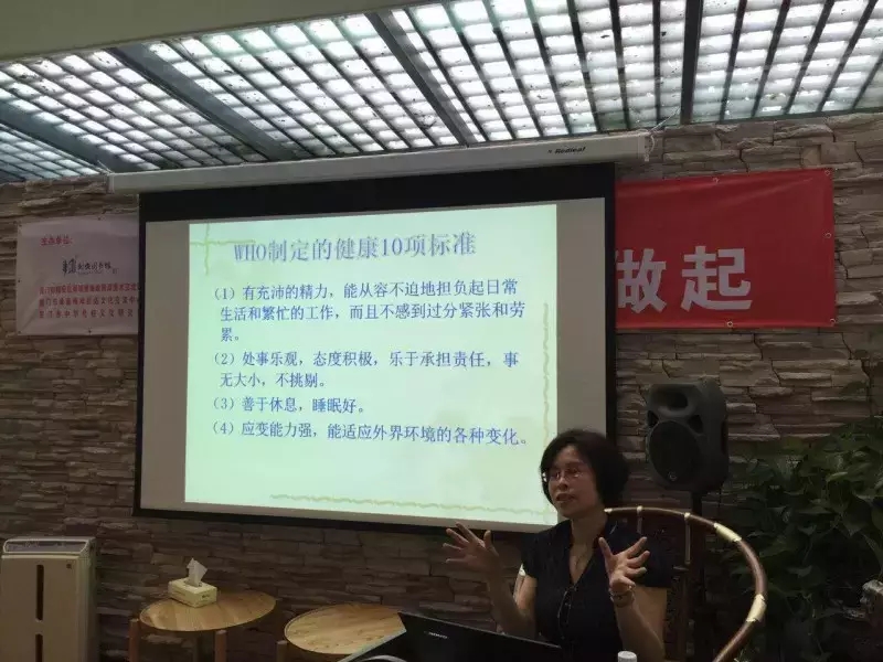 田丁所长首先跟大家探讨了健康的新理念:身体、心理状况良好,社会适应力良好。她指出:健康是每天生活的资源,并非生活的目的。健康是社会和个人的资源,是个人能力的体现。然后,她对世卫组织关于健康的十项标准进行了解析,结合实际案例和翔实数据,介绍了与人们的期望寿命和良好健康显著相关的七项行为和保持健康生活方式的“四字箴言”。最后,她详细讲解了相关的具体指标和注意事项,鼓励大家养成健康的行为习惯,经营自己的健康。讲座中,田丁所长解答了大家在生活中的健康误区问题,跟大家进行了有奖问答互动,现场气氛活跃。
