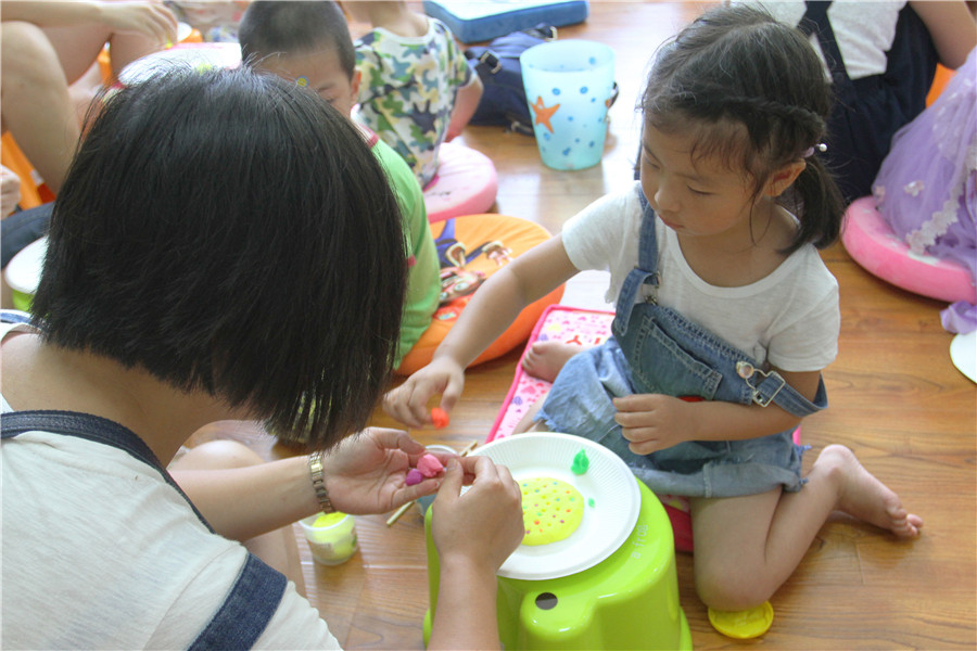 7月31日上午,翔安区图书馆在低幼阅读体验区举办了“亲子阅读坊”第七期活动。翔安区新店中心第二幼儿园的2名幼儿园老师为到场的低幼小读者和家长带来了《谁咬了我的大饼》的绘本故事,是一本充满悬念的绘本,让孩子们感受故事内容的诙谐幽默。老师们还指导亲子动手用橡皮泥制作各式各样的大饼等食物。活动结束后,老师还为小读者们讲述了各式各样的绘本,与家长交流,指导亲子阅读。