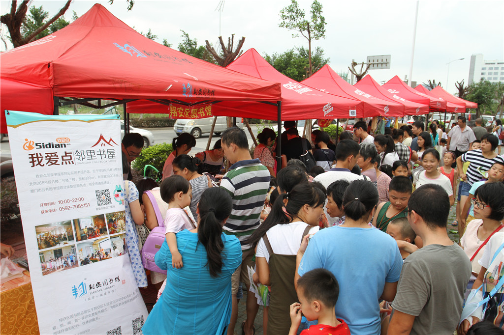 活动现场,翔安区图书馆开展了手绘环保袋送长辈、新成立的“我爱点邻里书屋”宣传、“掌阅翔图”翔安区移动图书馆APP推广等活动。除此之外,还有夹咖啡豆、比眼力、套圈圈等小游戏以及咖啡厅美食、彩色馒头DIY、现场抽奖等活动,吸引社区群众积极参与,场面火爆。