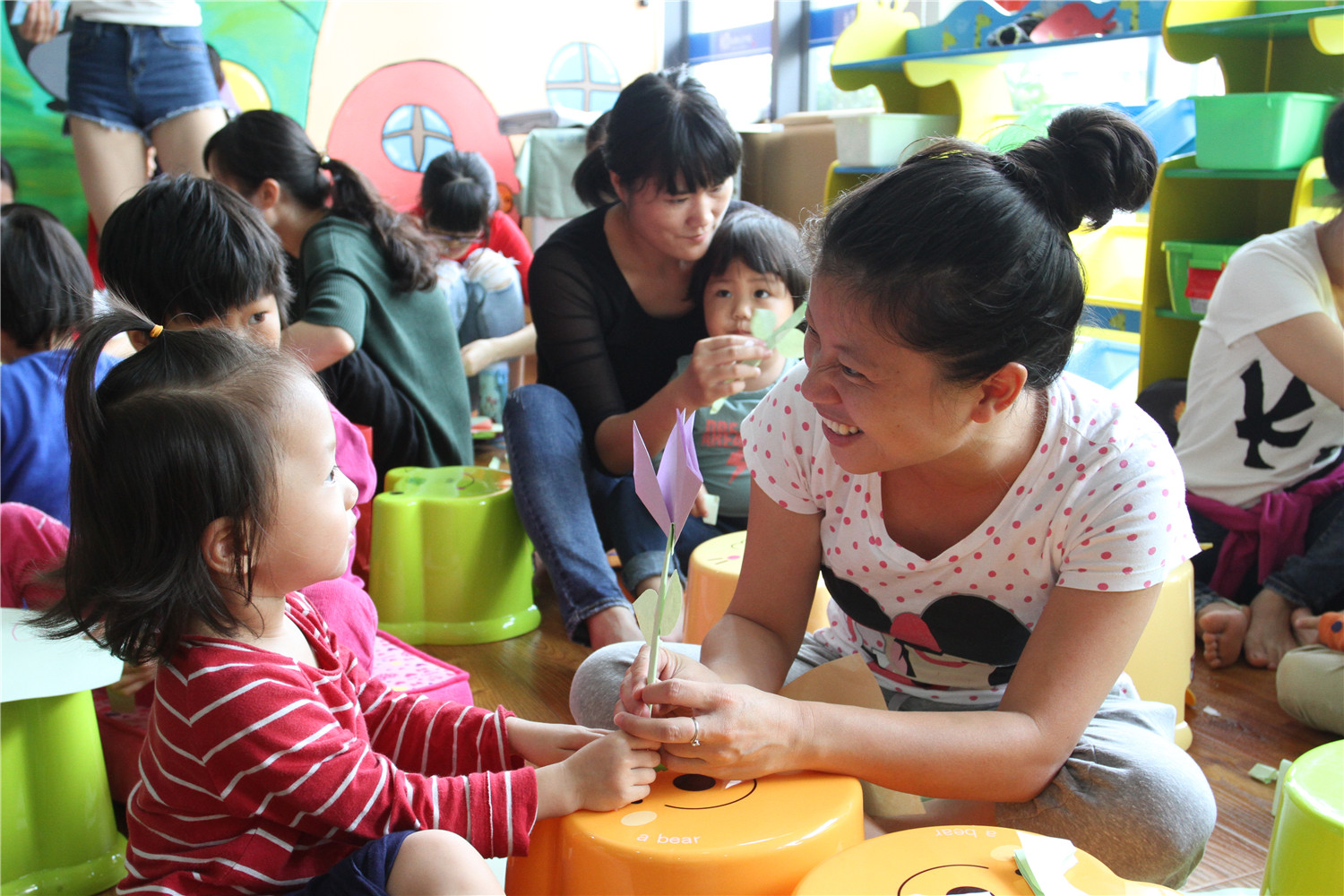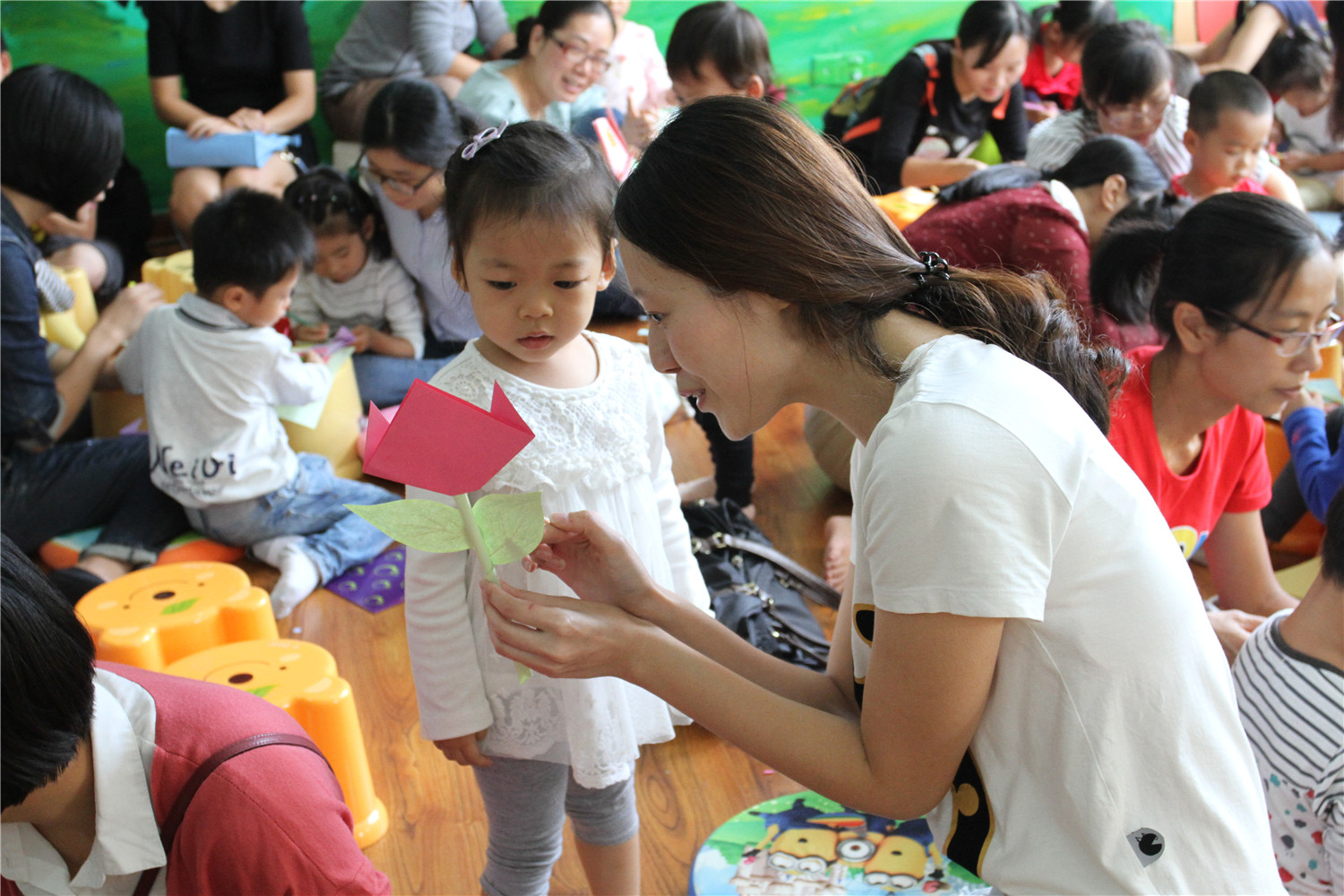 10月30日上午,翔安区图书馆在低幼阅读体验区举办了第13期“亲子阅读坊”活动。翔安区新店第二中心幼儿园的2名教师志愿者为到场的低幼小读者和家长带来了《我妈妈》的绘本故事,绘本中呈现了一位无所不能、平凡而伟大妈妈,让现场的小读者们在书海中感受妈妈的爱。老师还指导小读者用彩色折纸制作手工玫瑰花。活动结束后,老师还讲述了各式各样的绘本,并与家长交流,指导亲子阅读。