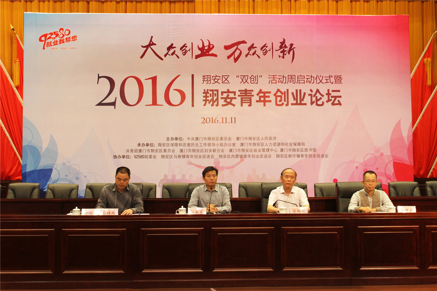 11月11日上午,由中共厦门市翔安区委员会、厦门市翔安区人民政府主办,翔安区图书馆与区人社局、团区委、区妇联等联合承办的2016翔安区“大众创业 万众创新”活动周启动仪式暨翔安青年创业论坛在区政府综合楼隆重举办。