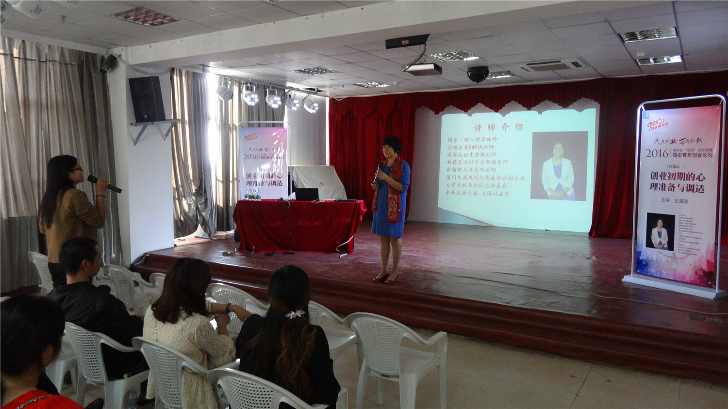 邀请了厦门心理咨询协会王海英作《创业初期的心理准备与调适》的专题讲座;