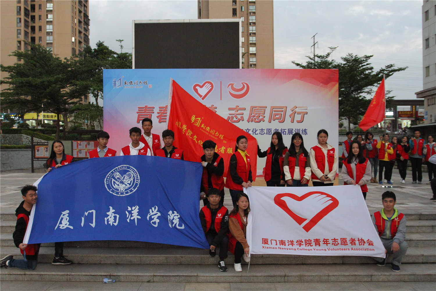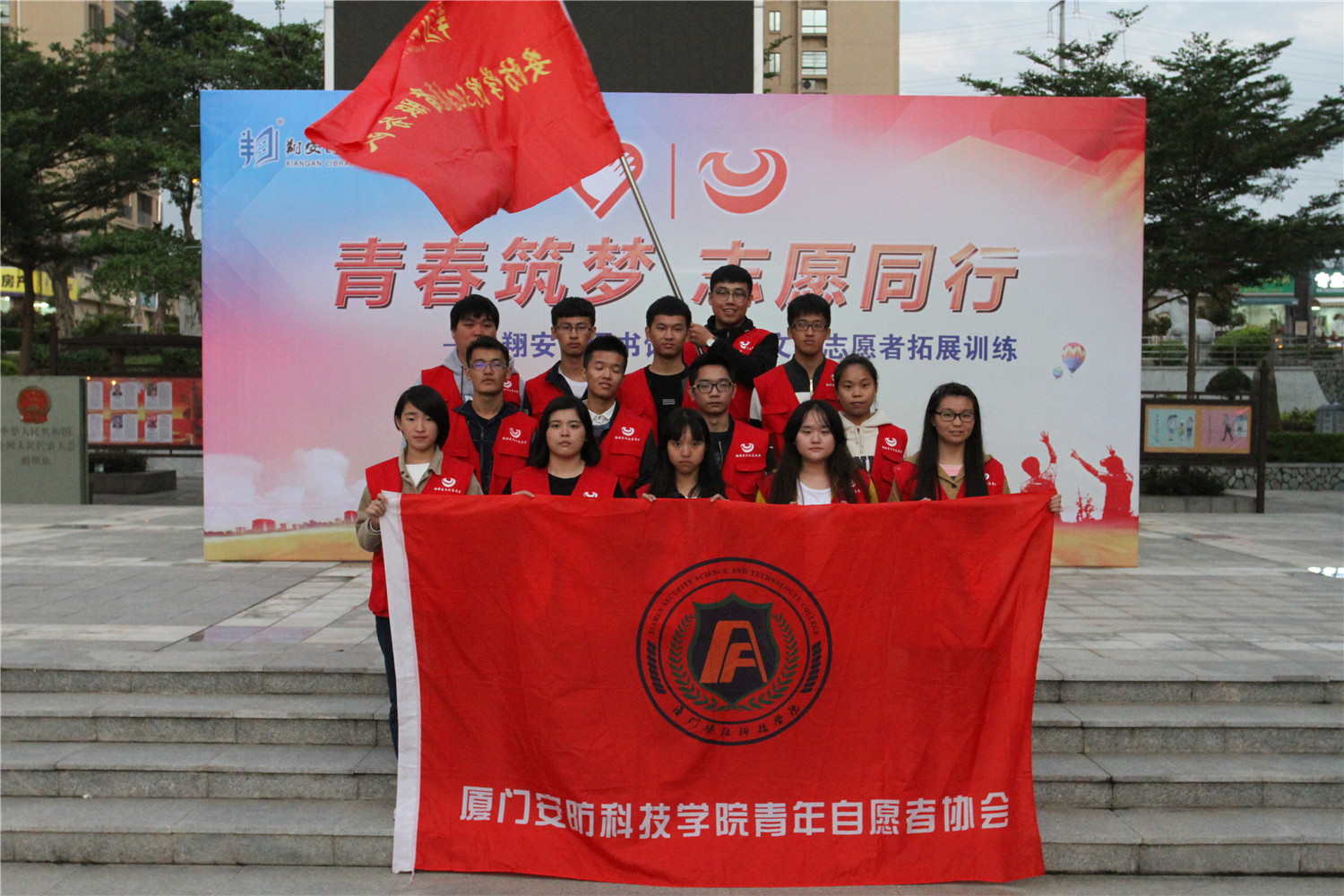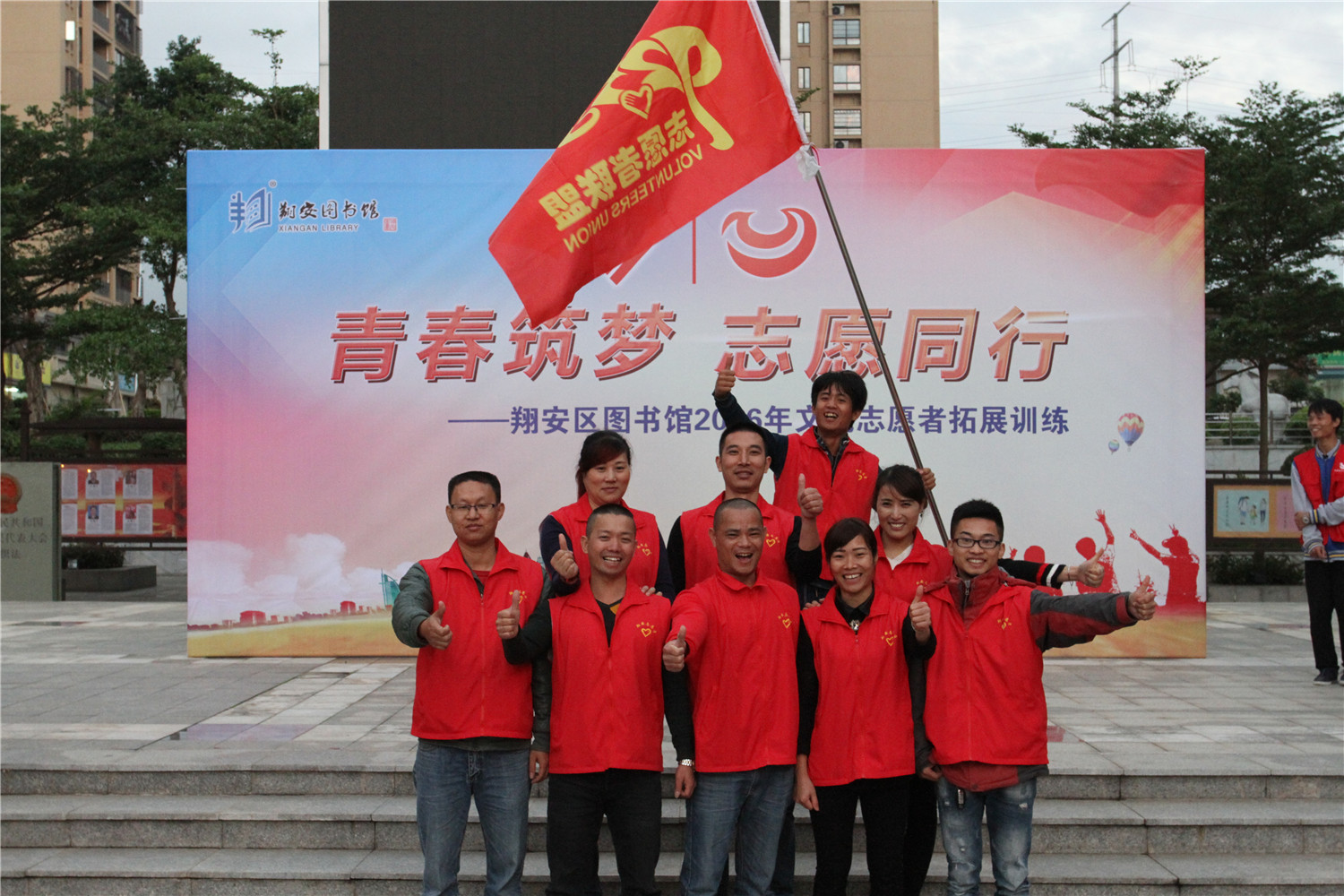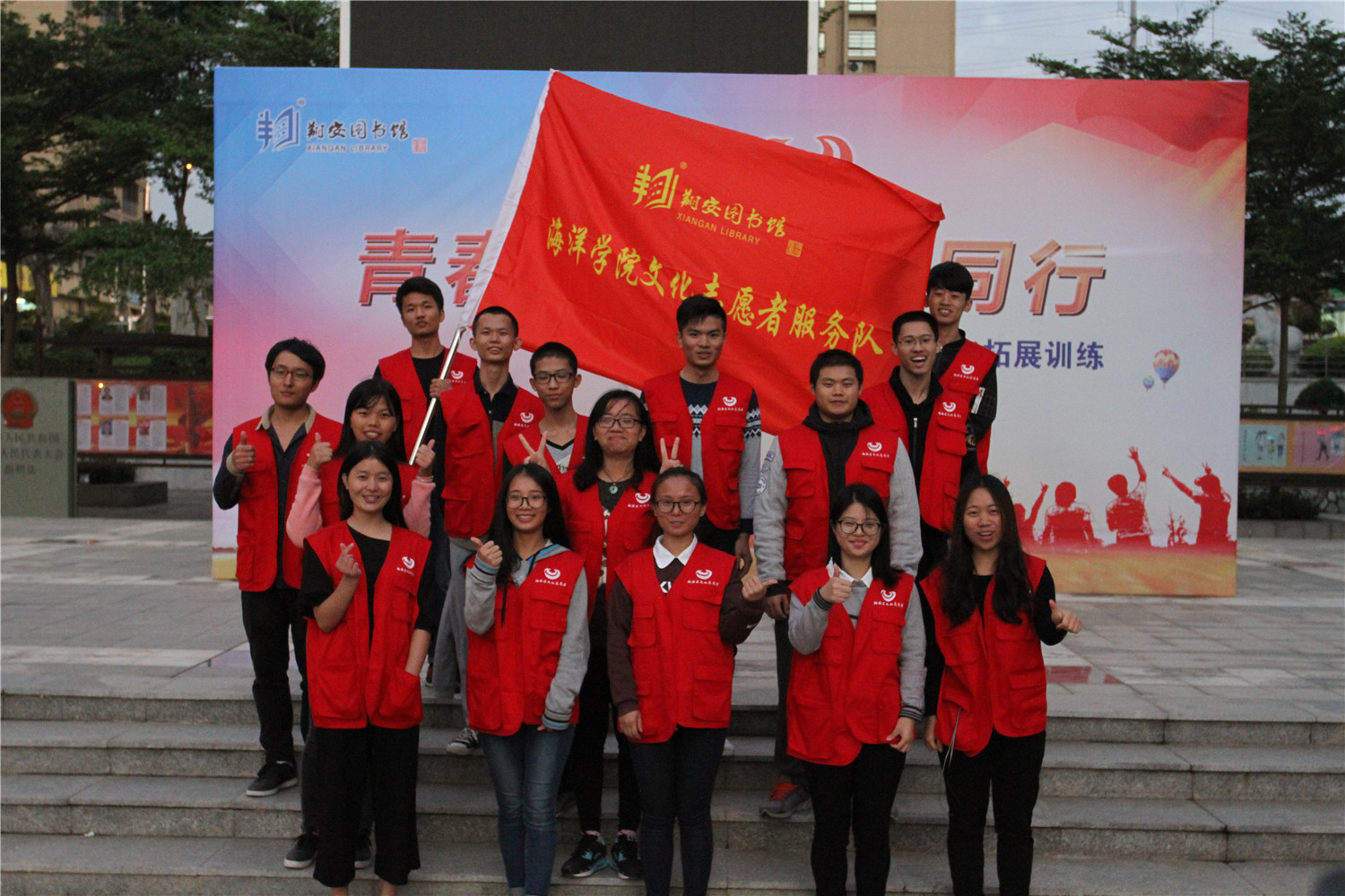 11月27日,翔安区图书馆在文化中心广场举办“青春筑梦 志愿同行”2016年文化志愿者拓展训练,近100名翔安区图书馆文化志愿者骨干参加培训,他们主要来自厦门大学、海洋学院、技师学院、南洋学院、华天涉外学院、安防学院等6所高校以及92580志愿者联盟。