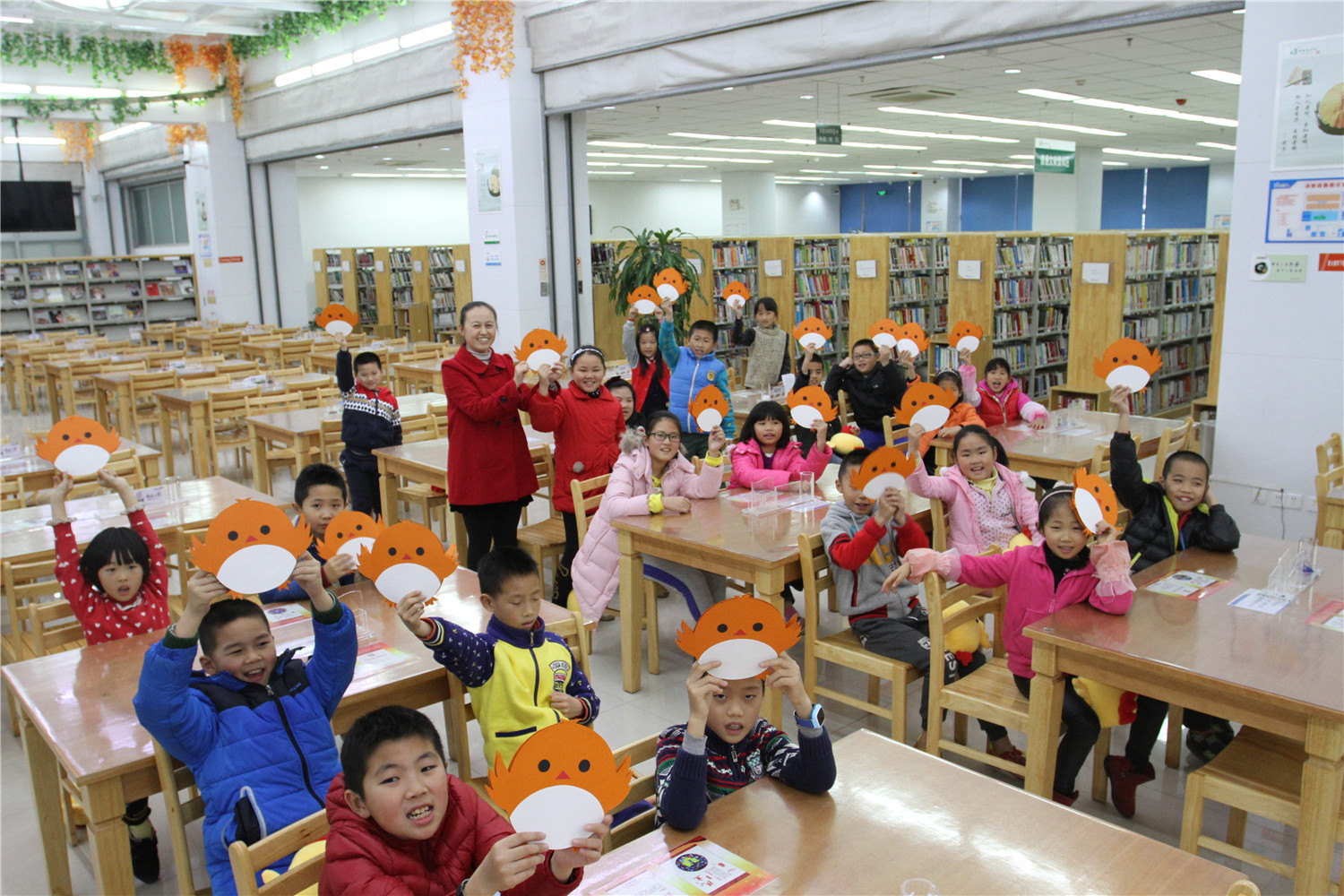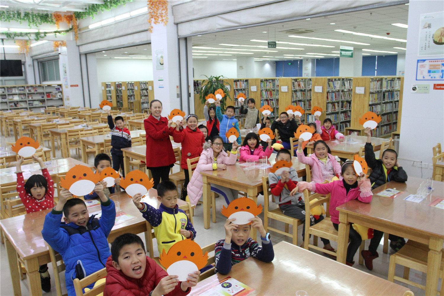 1月20日,美好的时光总是短暂的,“祥鸡闹春”冬令营进行到第五天,也迎来了尾声。小营员们捧着自己亲手制作的小鸡布偶和小鸡造型手工书在图书馆内拍照留念,同时也邀请家长们一起见证了他们的成果。