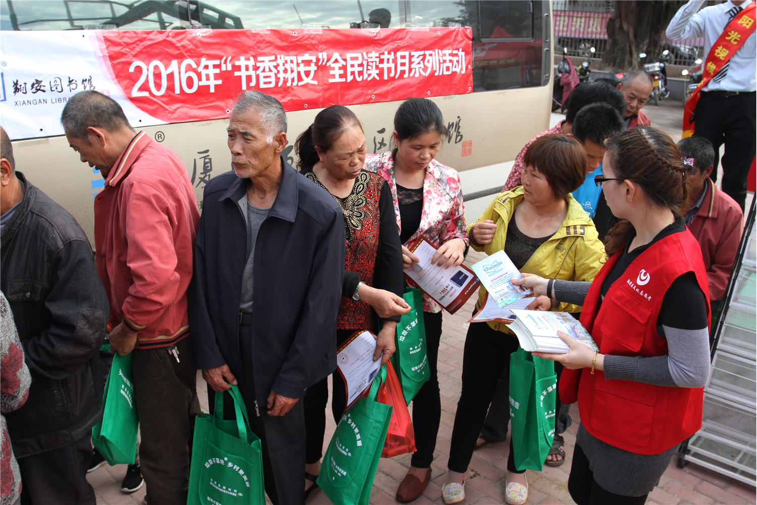 12月20日,翔安区图书馆在新店镇浦园社区举办翔安区2016年“书香翔安”全民读书月系列活动之 92580就业我帮您“三送”进社区暨文化下乡活动。翔安区图书馆组织文化志愿者开展了现场办证借书、“掌阅翔图”翔安区移动图书馆推广、图书馆宣传、创业图书推介等,并精心设计了与翔安区地名有关的具有本土特色的灯谜活动,倡导全民阅读,推动书香翔安建设,受到了广大村民的热烈欢迎和积极参与。