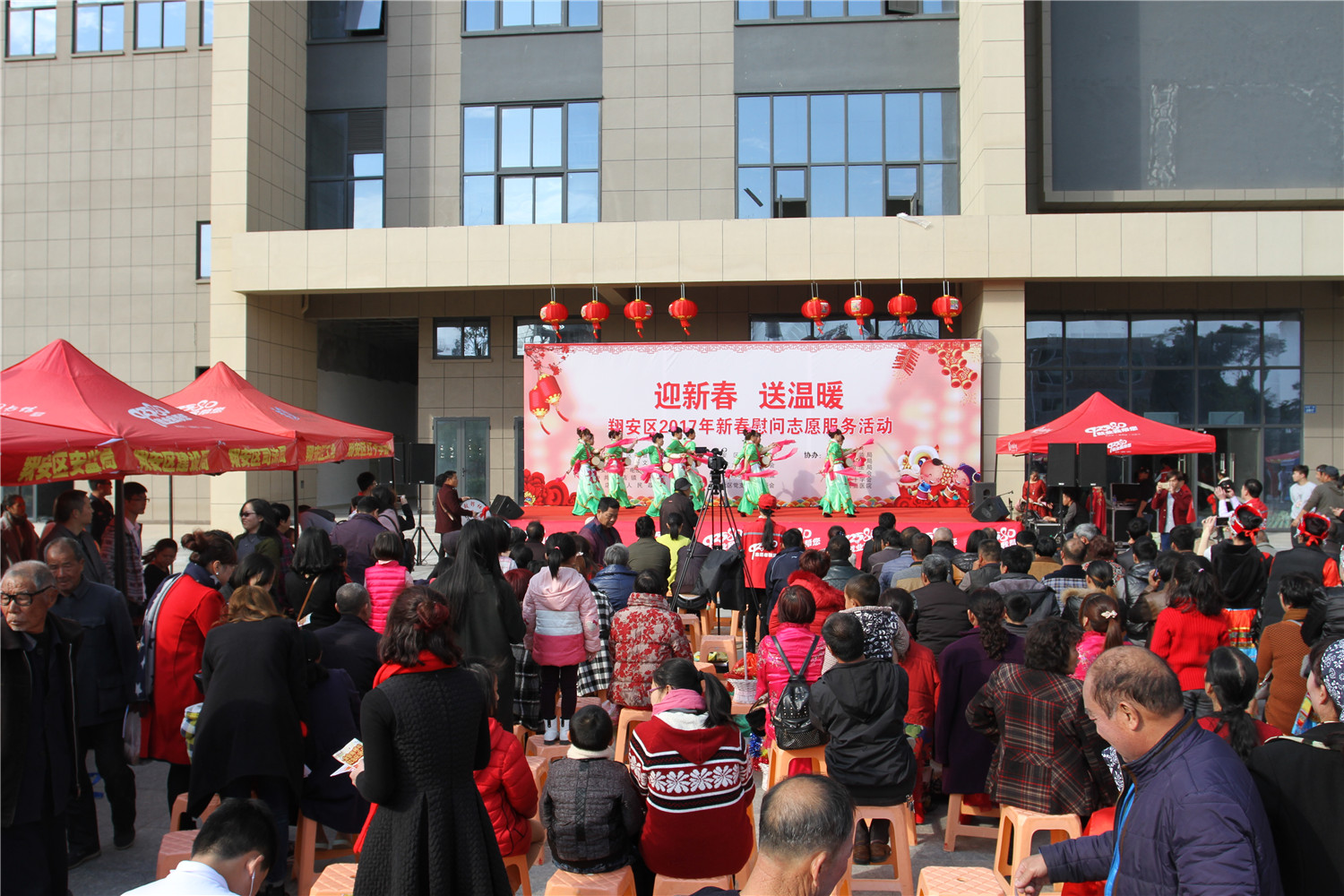 1月23日,翔安区新店镇鼓岩社区锣鼓喧天,热闹非凡,一场由区委宣传部、文明办、区文广电出版旅游局、新店镇主办,翔安区图书馆、92580志愿者联盟等承办的2017年“迎新春 送温暖”志愿服务活动暨92580“三送”进鼓岩社区在此举行。