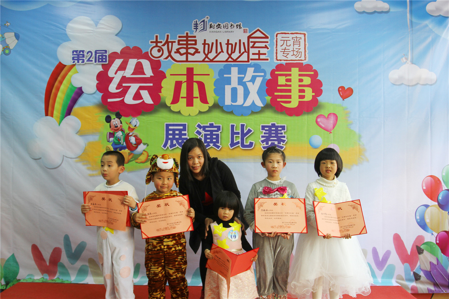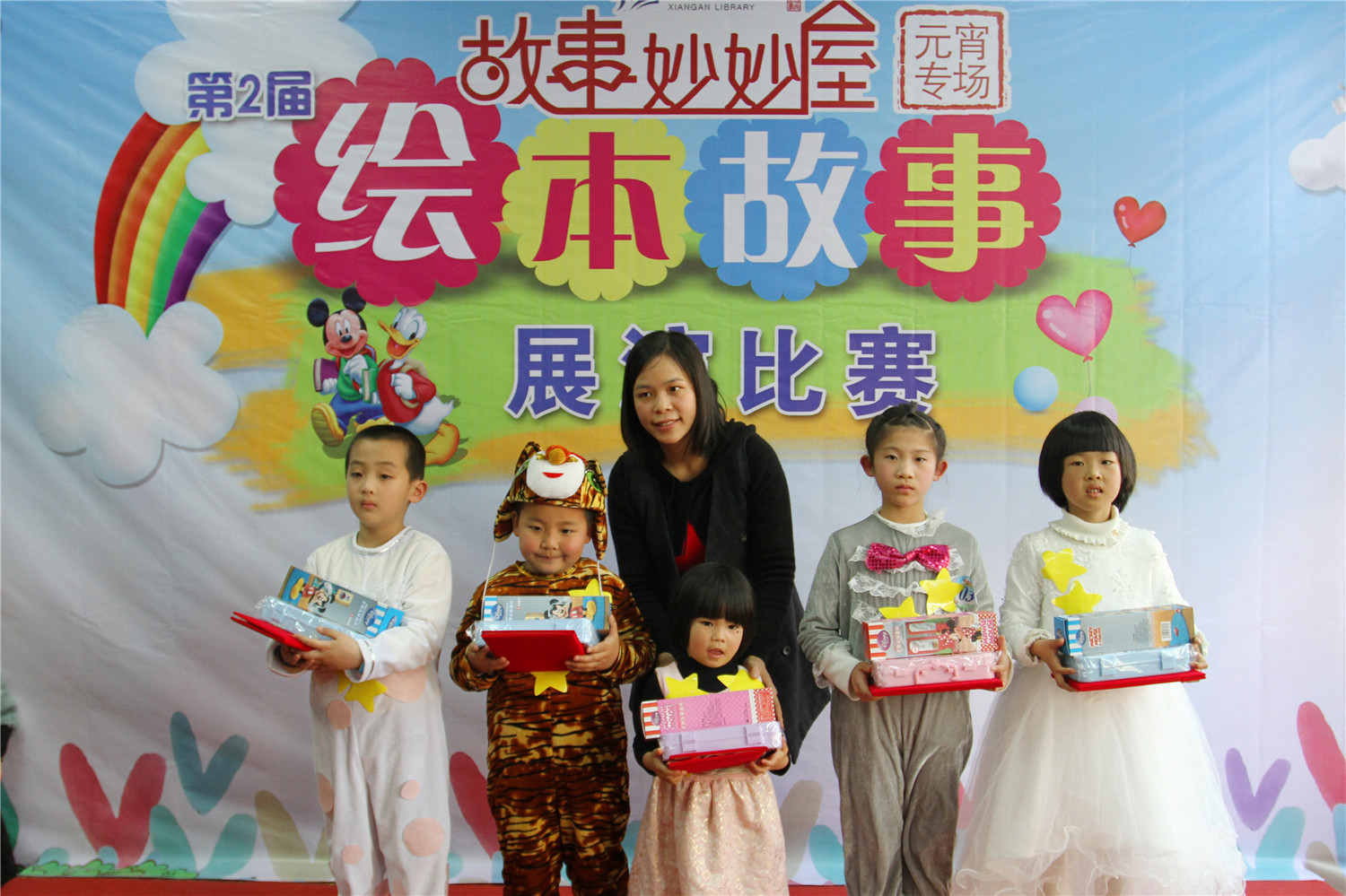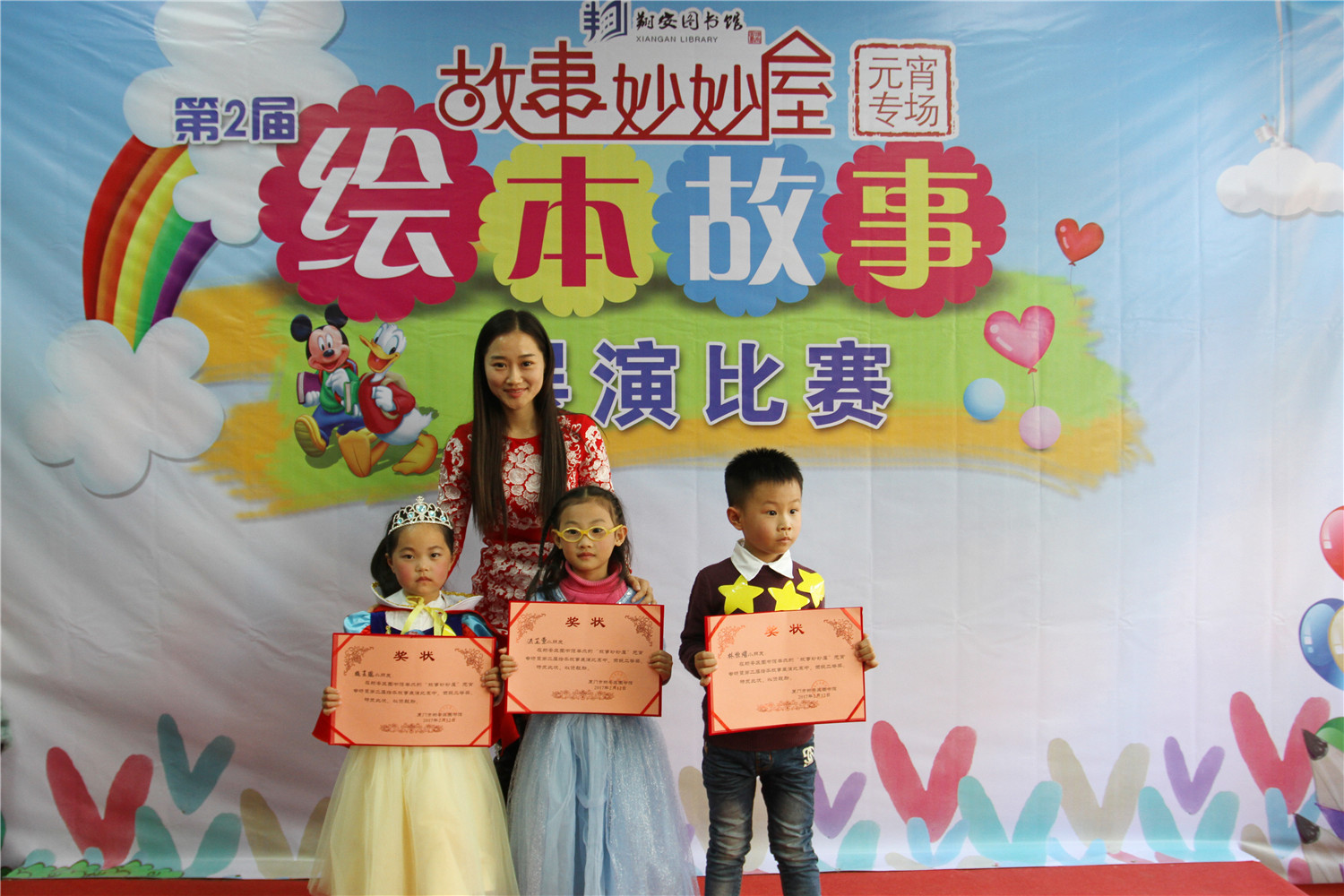 2月12日下午,翔安区图书馆举办了2017年“故事妙妙屋”元宵节专场暨第二届绘本故事展演比赛,现场20名故事表演的小选手和15名大众小评审参加了活动。活动还邀请了“亲子阅读坊”、“故事时间到”活动的故事老师以及资深少儿演讲比赛指导老师作为评委。比赛采取评委老师和大众评审团共同评奖的方式,最终蔡珺娅小朋友和杨芮熙小朋友以流畅清晰的语言、自然得体的动作、吸引眼球的舞台表现获得了比赛的一等奖。值得一提的是,大众评审团由平时热爱“故事妙妙屋”活动、喜爱听故事的小朋友组成,以孩子们的眼光选出他们心目中最会讲故事的小童星。活动中,主办方还准备了丰厚的奖品、奖状,让所有小朋友度过了一个快乐、难忘、有意义的元宵佳节。