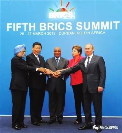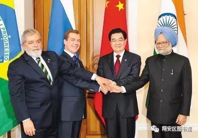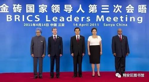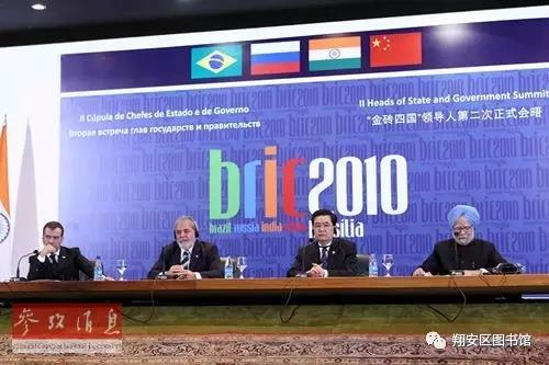 金砖四国(BRIC)引用了巴西、俄罗斯、印度和中国的英文首字母。该词与英语单词的砖(Brick)类似,因此被称为“金砖四国”。2010年南非加入后,变为“BRICS”,并改称为“金砖国家”。2008年-2009年,金砖四国举行系列会谈和建立会晤机制,拓展为国际政治实体。2009年6月,金砖四国领导人在俄罗斯举行首次会晤,金砖国家此后逐渐形成定期会晤机制,此后每年都有相关会晤和领导人非正式会晤。2010年4月,第二次“金砖四国”会晤在巴西召开。会后四国领导人发表《联合声明》,“金砖国家”合作机制初步形成。2011年4月,第三次金砖国家会晤在中国三亚举行,南非第一次参加会晤。