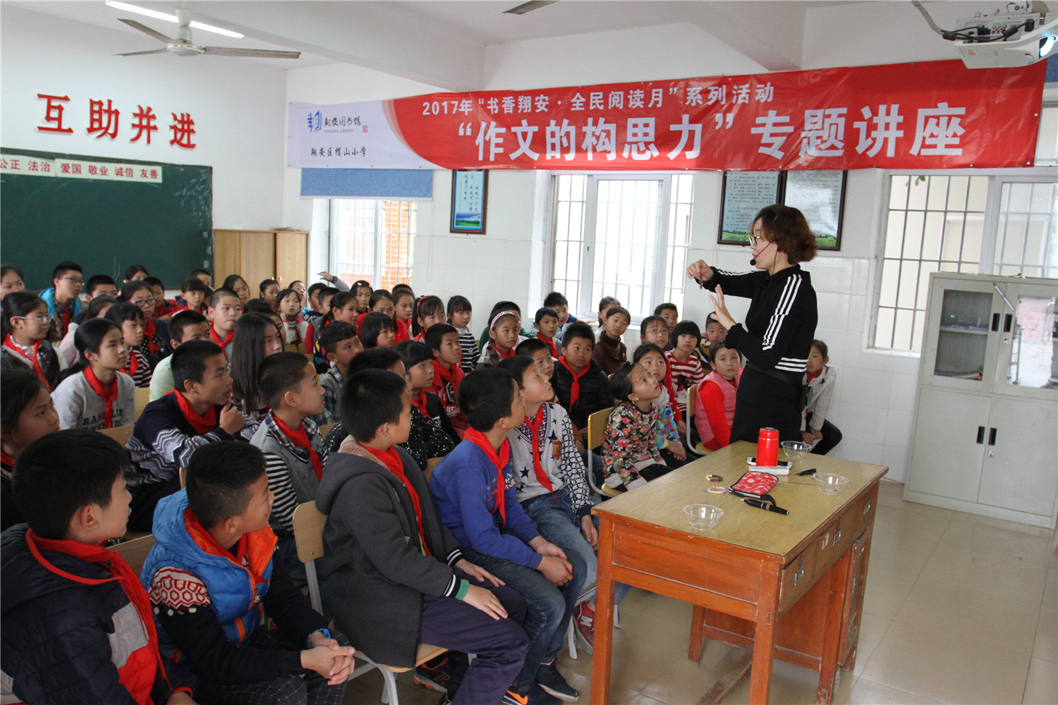 3月30日,翔安区图书馆邀请了优秀作文培训教师吕芳走进新圩帽山小学,为学生们带来精彩的“作文的构思力”专题讲座,此次讲座是翔安区图书馆2017年“书香翔安•全民阅读月”系列活动之一。吕芳老师从“串珠子”的小游戏引入主题,指导学生如何构思作文,培养他们的观察力和思维的发散性。活动现场还举办了“百种好书”进校园、“书香翔安•全民阅读月”宣传等活动,营造了“好读书、多读书、读好书”书香校园的良好氛围。