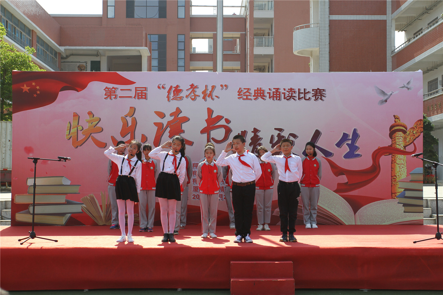 诵读比赛各班以课本教材中的课文、诗文、古文、中华经典《三字经》、《笠翁对韵》、《千字文》等优秀诗文作为诵读内容进行比赛,并由专业评委老师现场评出团体一、二、三等奖。通过举办经典诵读活动,弘扬祖国优秀的传统文化,让学生在诵读过程中获得中华传统经典的基本熏陶和修养,提高文化和道德素质,增强民族自信心和自豪感。
