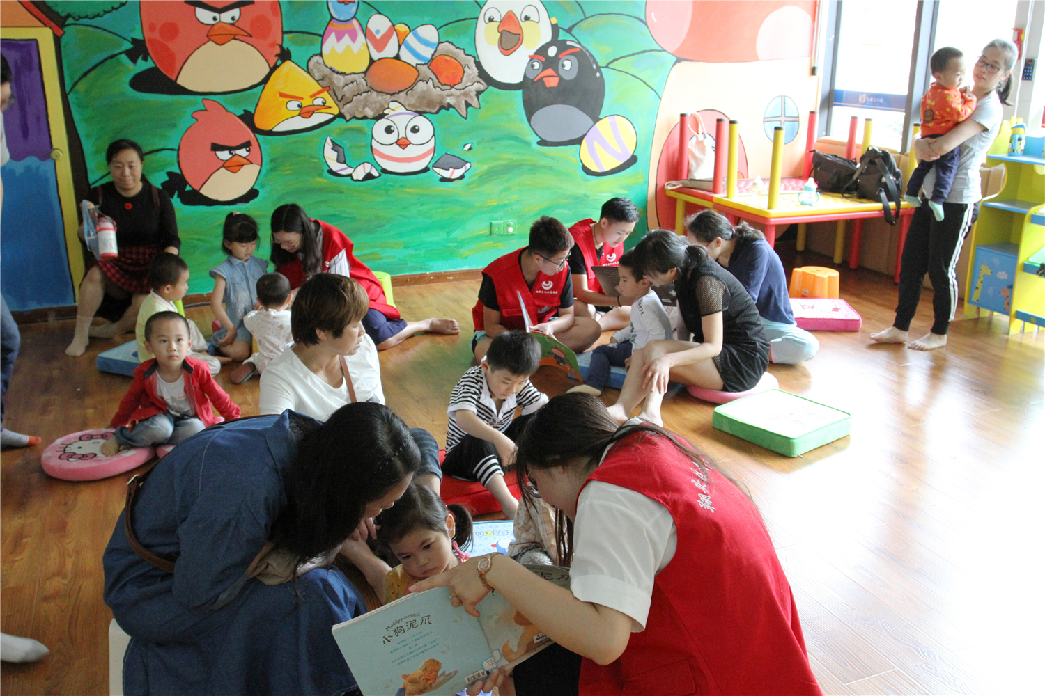 此次为小读者带来服务的是来自厦门市海洋职业技术学院的志愿者教师,他们通过精心组织的绘本讲述、游戏互动、律动带领、亲子互动等小环节,跟现场小读者热情交流,分享快乐。