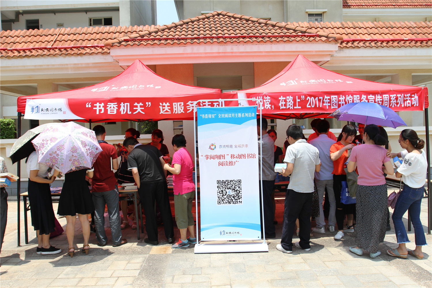 5月31日,翔安区图书馆在区机关食堂门口开展“书香机关”送服务活动,走进机关推介“掌阅翔图”翔安区移动图书馆、开展读者满意度调查、《中华人民共和国公共文化服务保障法》宣传等,并向机关工作人员分发图书馆出版发行的《锄山英烈传》、《孔雀东南飞》丛书、《创业榜样》、《美丽翔安 我的家》征文汇编及《翔安通》学说闽南话卡片等。此活动是“悦读,在路上”图书馆服务宣传周系列活动之一,让广大读者尽享图书馆带来的便利和海量资源,倡导全民阅读,建设书香翔安,在全区营造“好读书、多读书、读好书”的良好社会氛围和文明风尚。