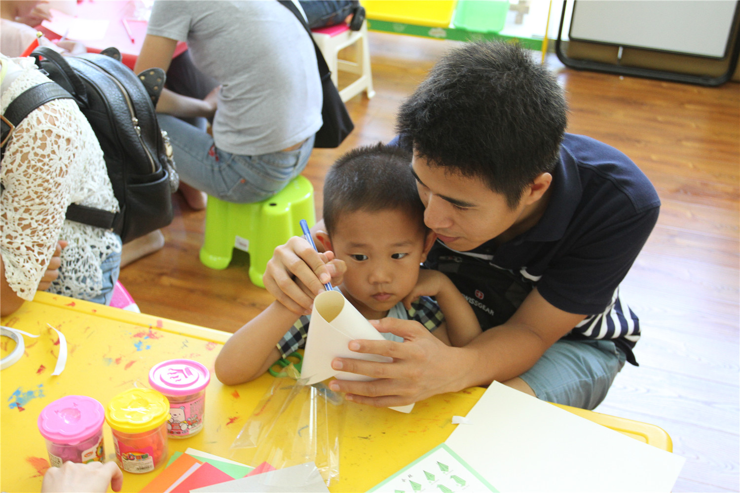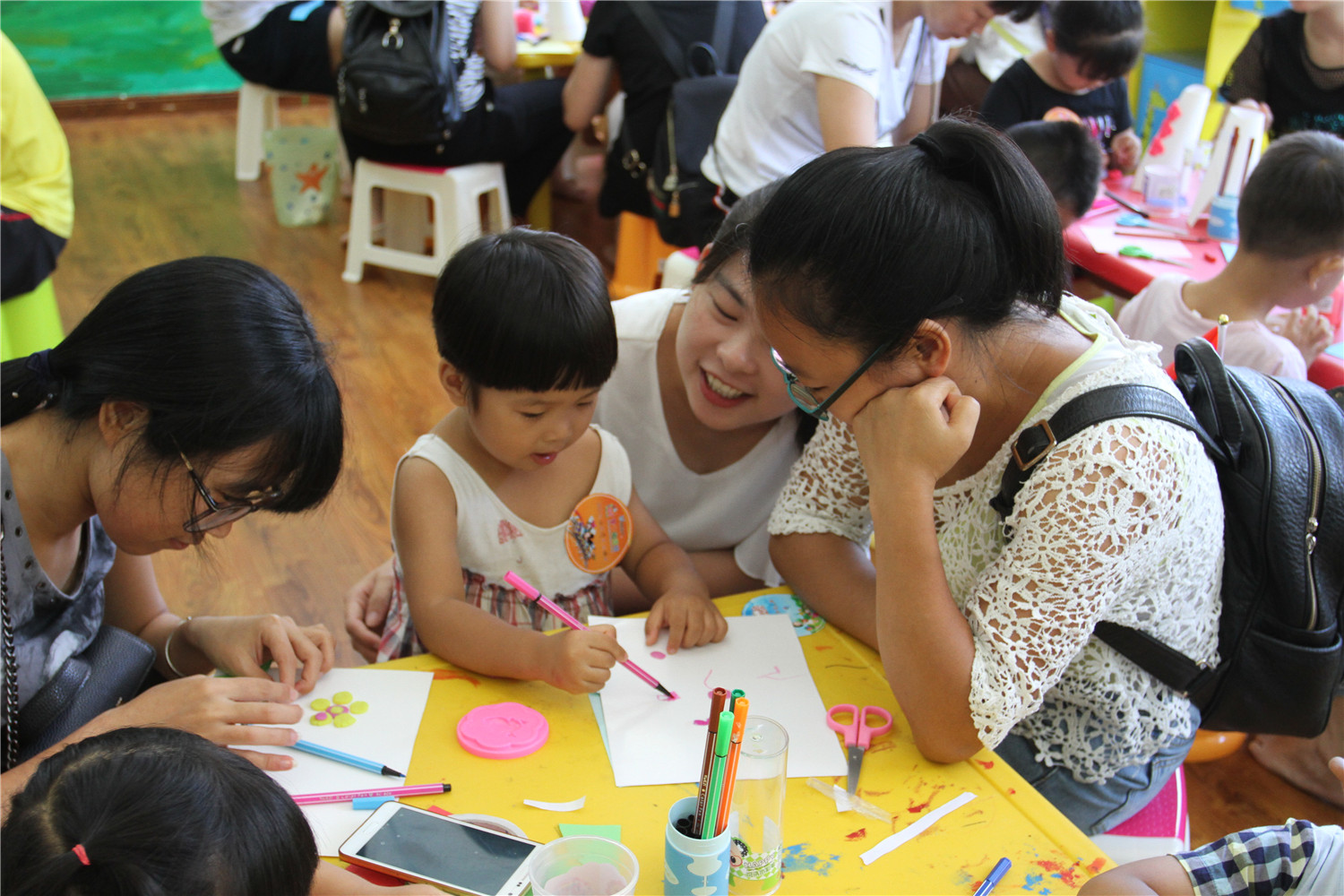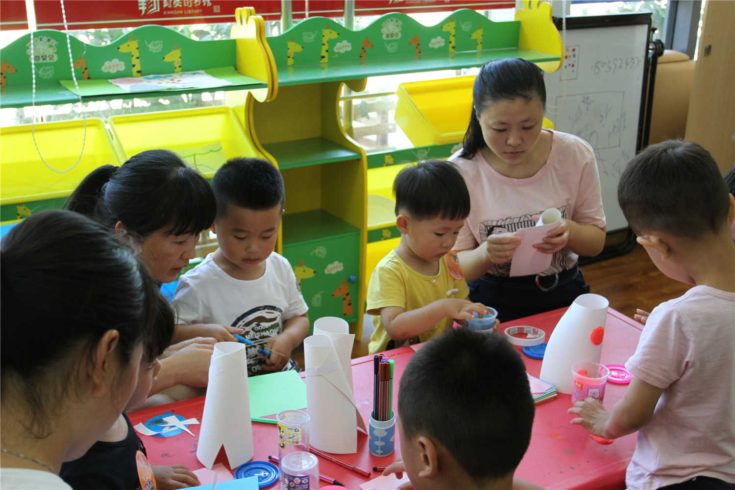 6月11日上午,翔安区图书馆在低幼阅读体验区举办了“亲子阅读坊”2017年第11期活动。翔安区新店第二中心幼儿园的2名教师志愿者为到场的低幼小读者和家长带来了《我的连衣裙》的绘本故事,感受书中小兔连衣裙花样的变化,让他们用语言表达自己的理解和想象。老师还指导小读者用卡纸和橡皮泥制作富有创意的“连衣裙”。活动结束后,老师讲述了各式各样的绘本,并与家长交流,指导亲子阅读。