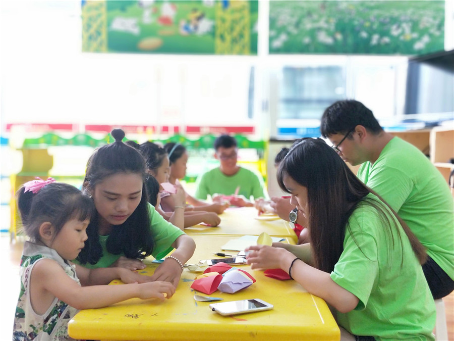 此次为小读者带来服务的是来自厦门海洋职业技术学院的志愿者老师,他们通过精心组织的绘本讲述、游戏互动、律动带领、亲子互动等小环节,跟现场小读者热情交流,分享快乐。