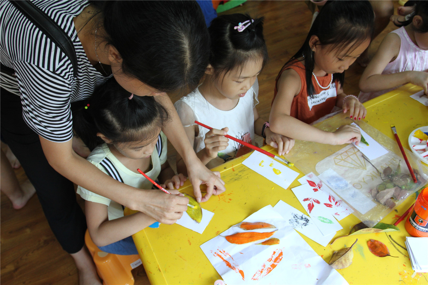 活动中,协会成员们指导到馆小读者及家长进行自然体验项目“叶拓”,在落叶上涂上薄薄的颜料拓印在纸上,呈现出美丽的叶脉;向小读者介绍红树林的种类、栖息在红树林里的动物,并就科普知识的图片、海报进行讲解,让他们认识红树林,了解红树林的作用,以及破坏红树林对环境的危害,树立环保意识;还进行有奖竞猜,通过一系列的知识普及,许多小读者都能很好地回答出红树林的基本知识。最后,通过按绿色手印的方式,让小读者成为“绿色天使”,带领更多的人加入环境保护的队伍当中。