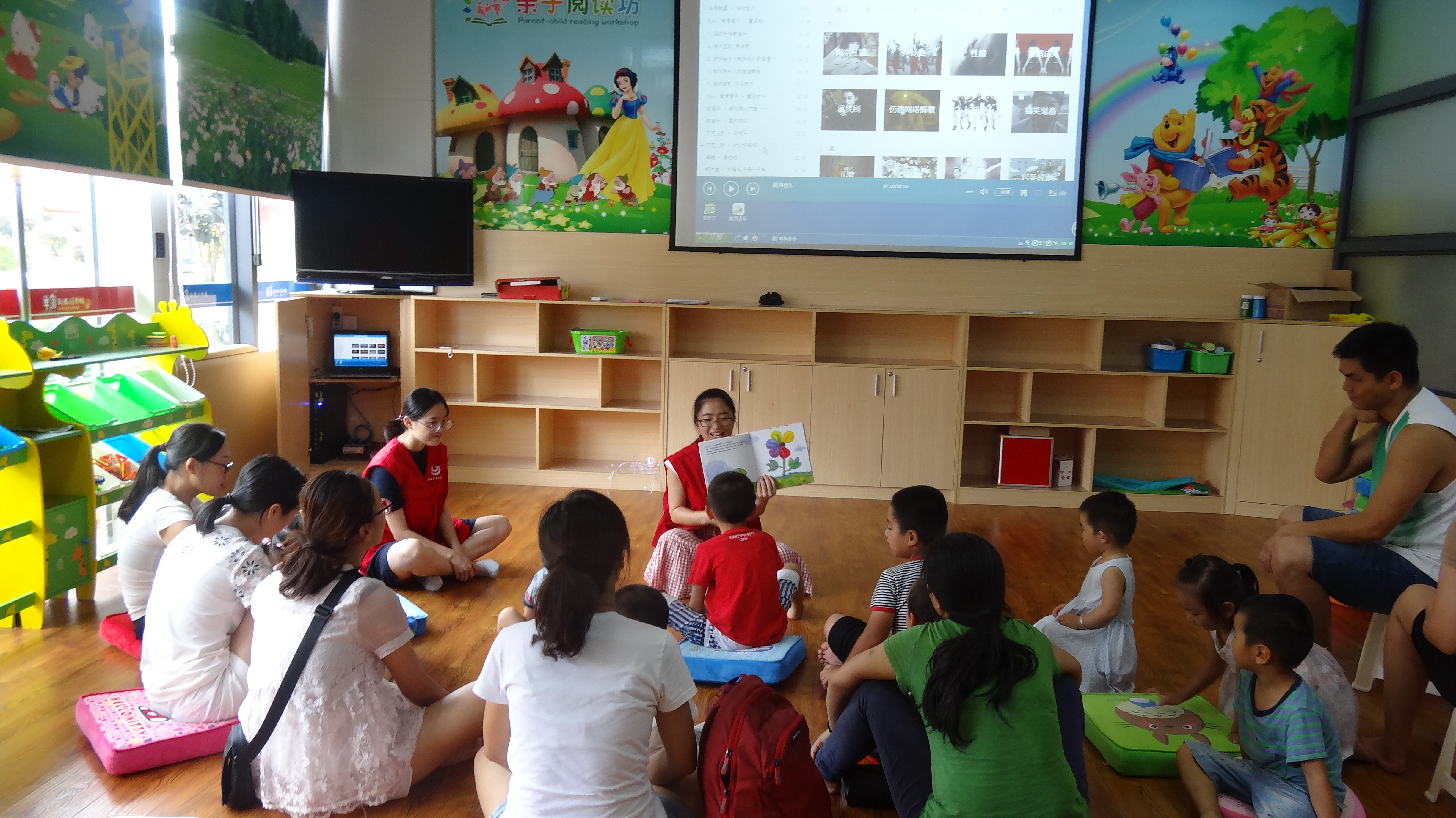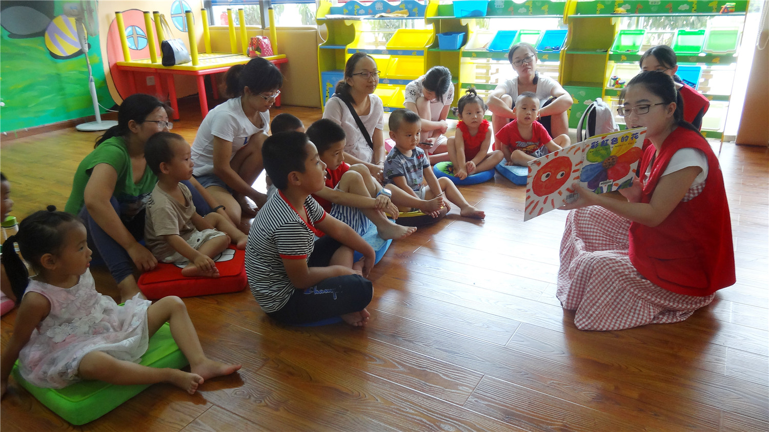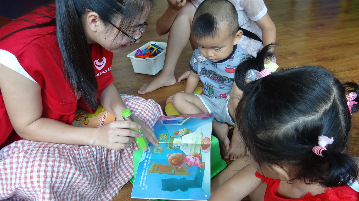 此次为小读者带来服务的是来自厦门市观音山音乐学校的志愿者老师林芳,她通过精心组织的绘本讲述、游戏互动、律动带领、亲子互动等小环节,跟现场小读者热情交流,分享快乐。