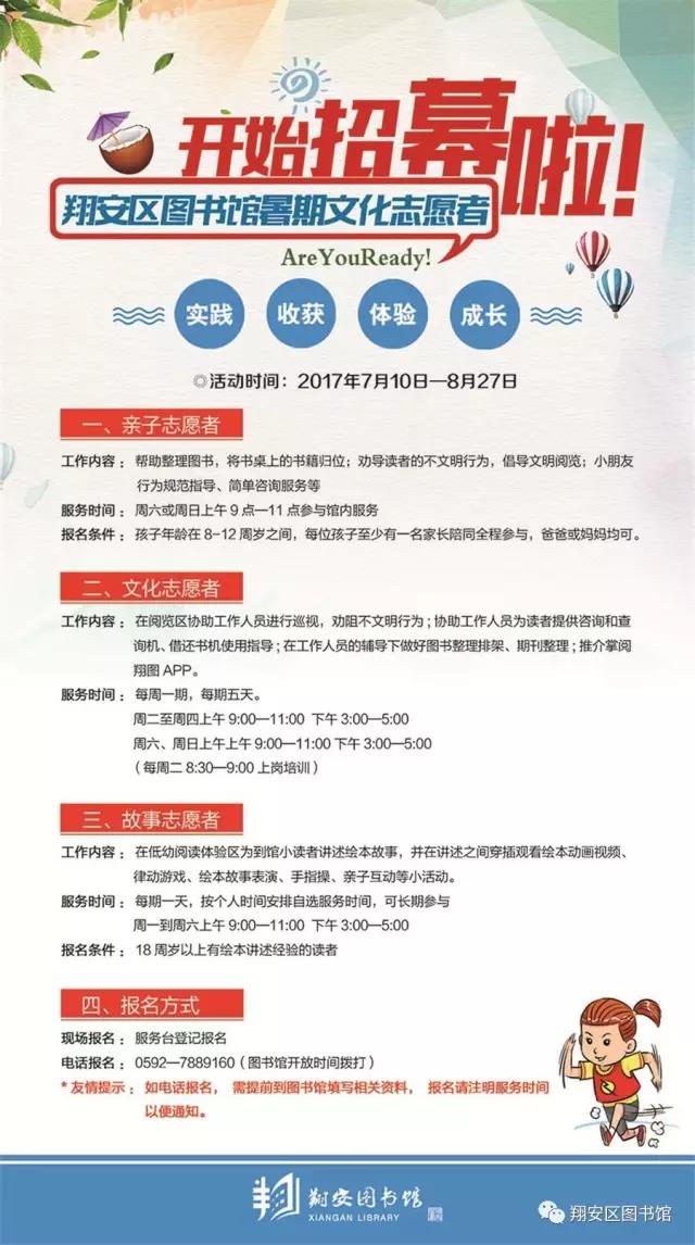 翔安区图书馆暑期文化志愿者开始招募啦!
