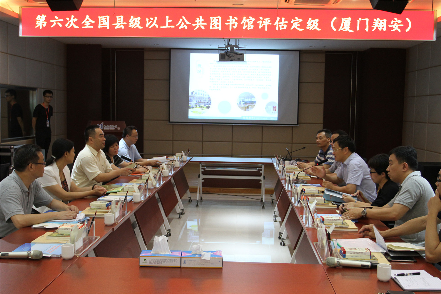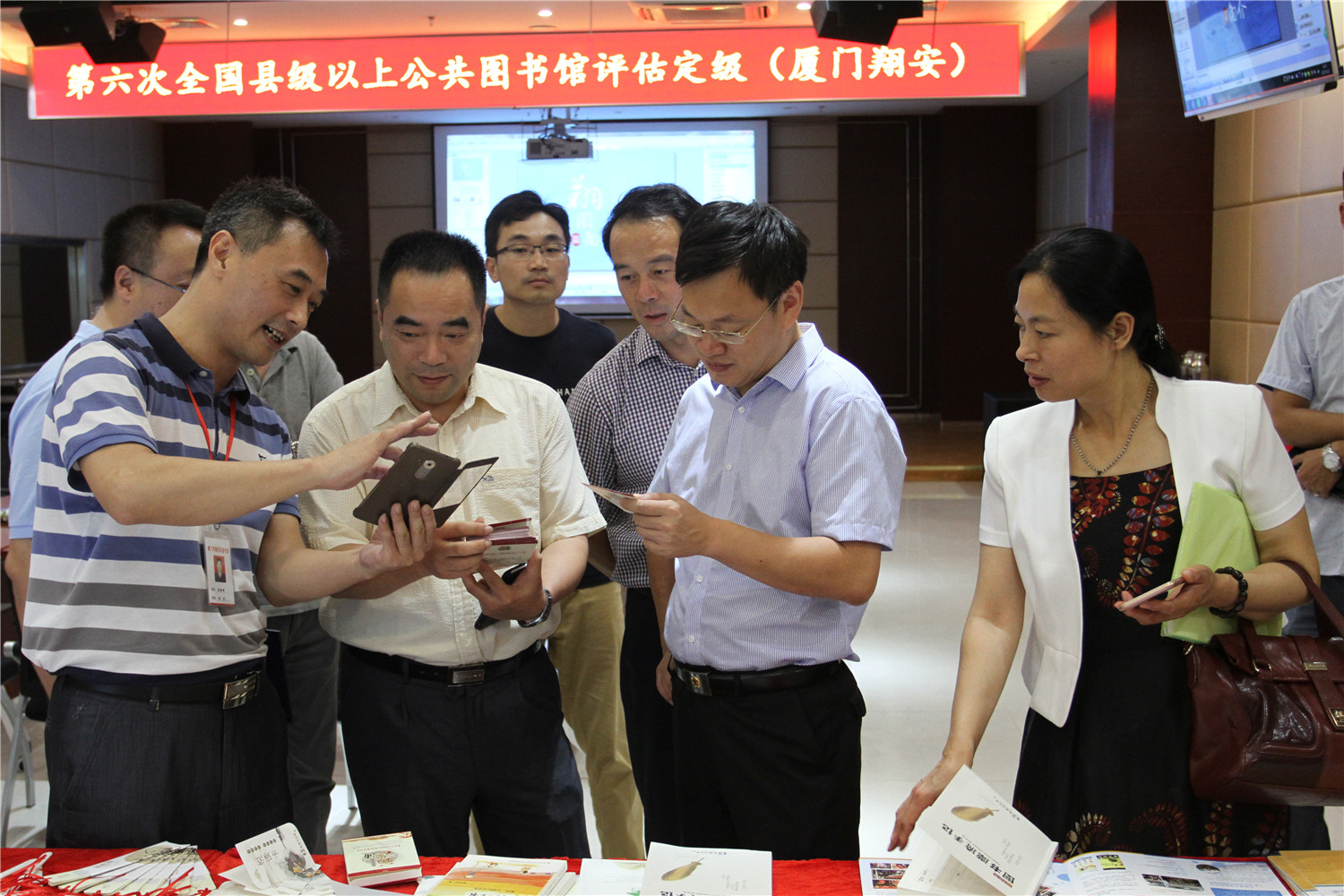 8月15日下午,由省文化厅社文非遗处处长陈晟、省图书馆副馆长叶建勤、福州市图书馆馆长宋姬芳、龙岩市图书馆馆长陈鸿雁、省图书馆办公室主任林永祥等组成的第二专家评估组一行5人,到翔安区图书馆开展实地检查评估工作。区政府副区长李毅、区文体广电出版旅游局局长蔡阿在、市文广新局社文处主任科员邱华琳、市图书馆业务协调部主任薛寒秋等陪同。