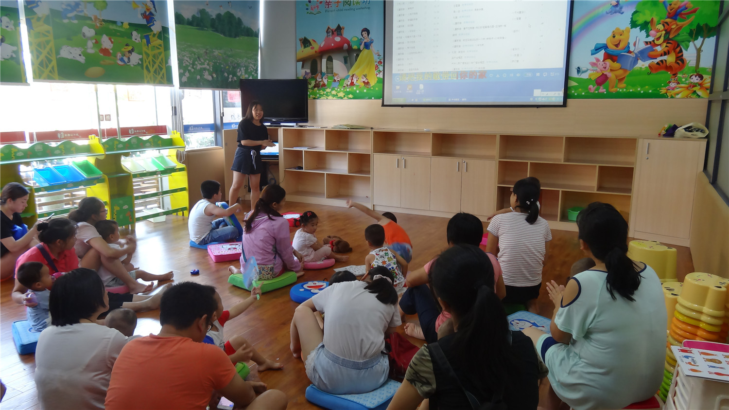 此次为小读者带来服务的是图书馆馆员及文化志愿者,他们通过精心组织的绘本讲述、游戏互动、律动带领、亲子互动等小环节,跟现场小读者热情交流,分享快乐。