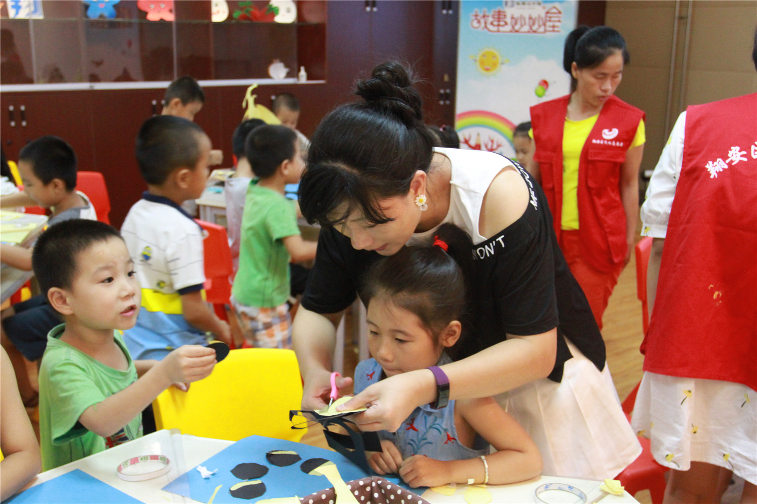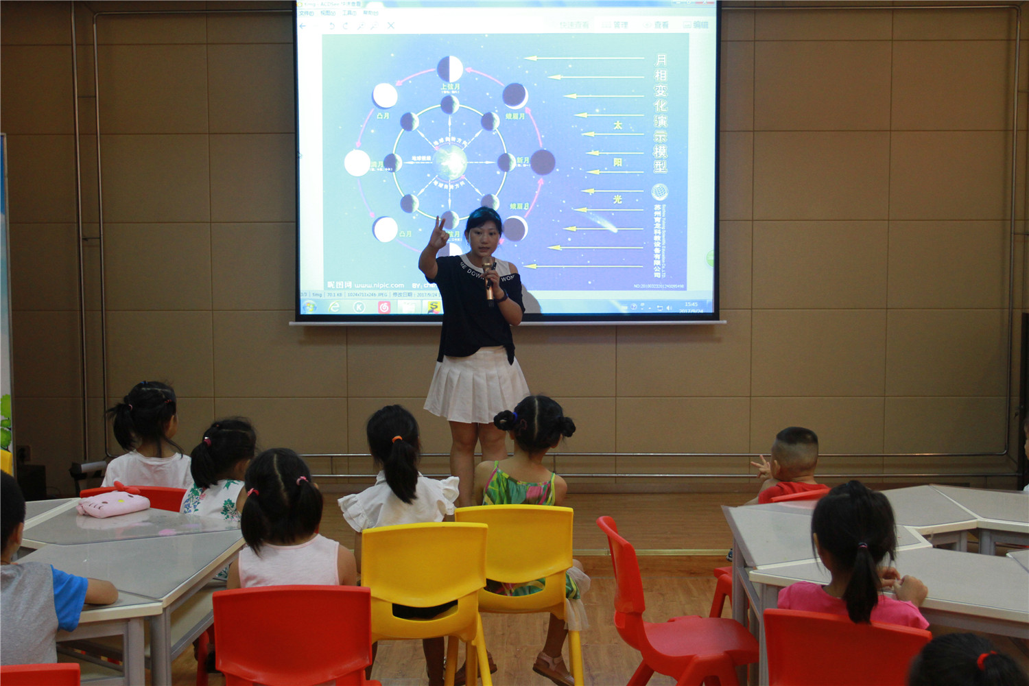 9月24日下午,翔安区图书馆举办了“故事妙妙屋”中秋节专场活动。老师首先让小朋友们合唱了《爷爷为我打月饼》的歌曲,让他们感受了浓浓的中秋氛围。老师还为小朋友们讲述了《月亮熊》的绘本故事,这是一个让小朋友们学会意识到自己的错误就虚心改正、学会与大家分享的温馨故事。故事结束后,老师指导小朋友们制作月亮的变化图,让他们在动手做中学习了天文知识。