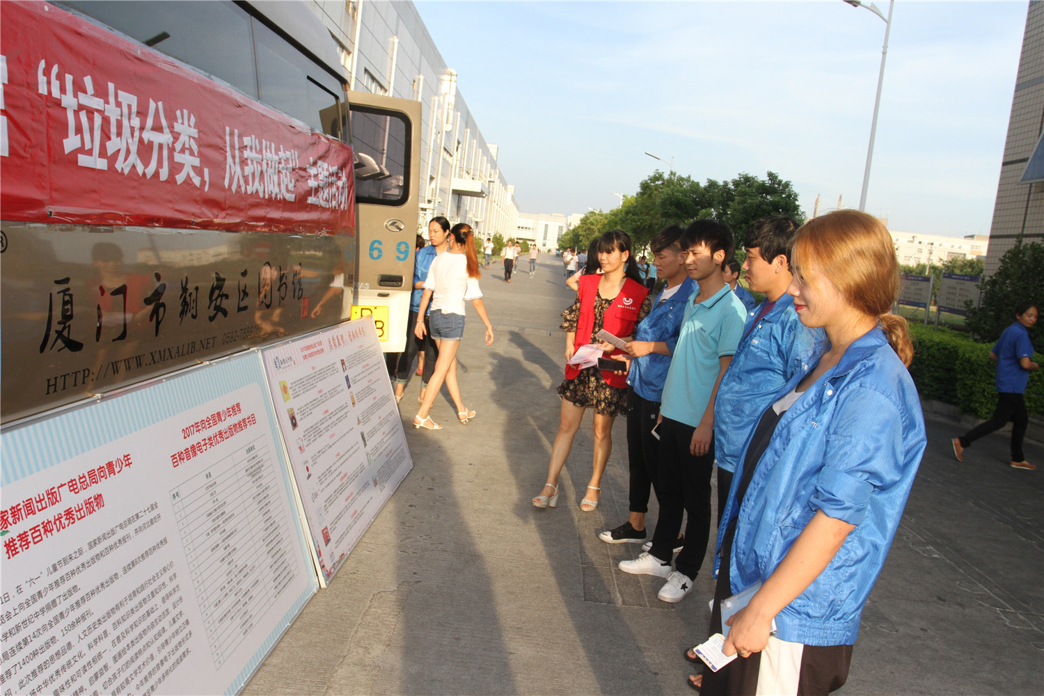 9月26日,翔安区图书馆组织馆员和文化志愿者走进冠捷显示科技有限公司,为企业员工提供办证借书服务、掌阅翔图推广、图书馆宣传等,展示、推介了由国家新闻出版广电总局发布的“2017年向全国青少年推荐的百种优秀图书”,受到了他们的热烈欢迎。