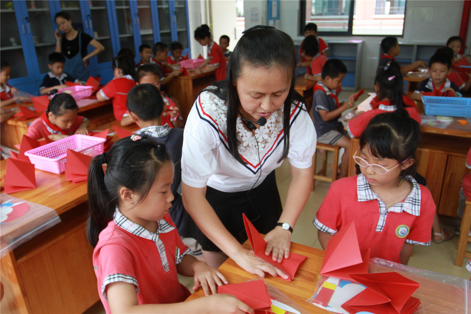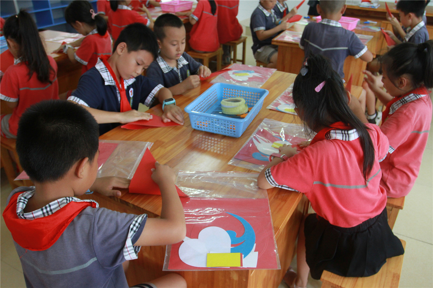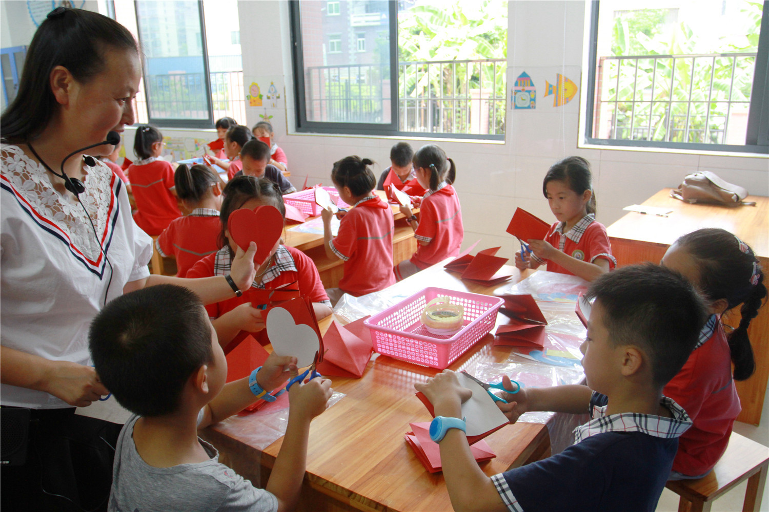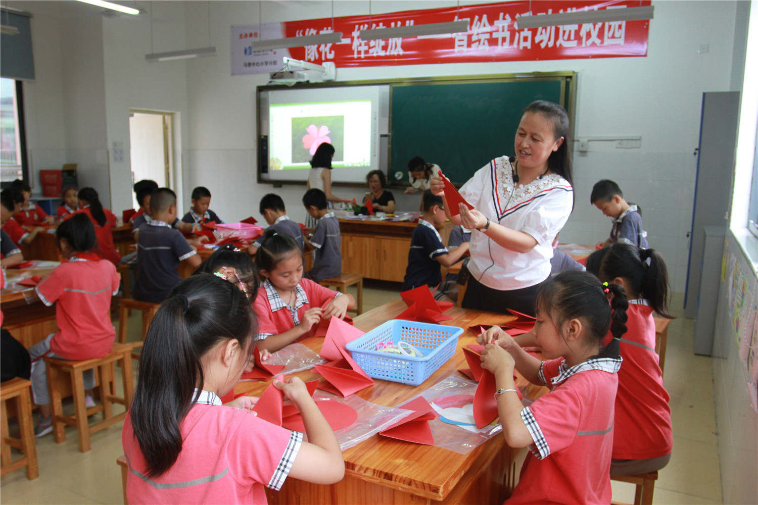 活动中,香橼老师介绍了各种各样的手工书,在场的三年级学生都产生了浓厚兴趣。老师还详细地讲解了封面和内页的做法,并指导他们动手制作以校徽为封面、红花为内页的手工书。通过本次活动,培养和挖掘了学生们的写作兴趣和动手能力。