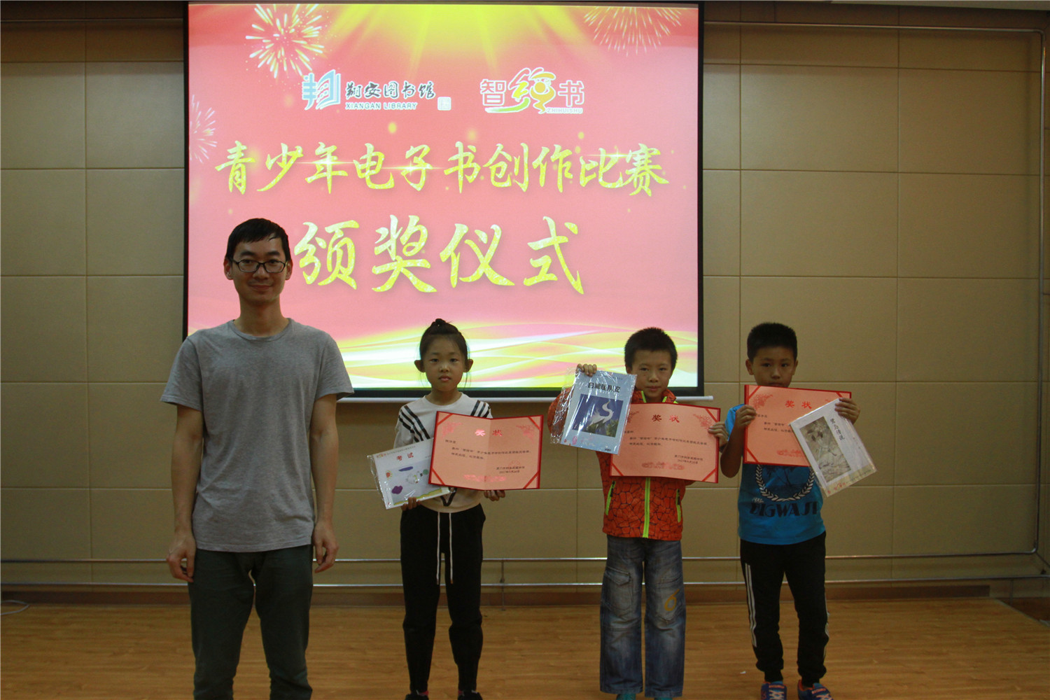 香橼老师首先带领小读者们品读了绘本故事《打破杯子的鼠小弟》,教育他们要做一个诚实的孩子;指导他们创作一篇关于诚实的童话故事;详细地讲解了封面和内页的做法,让他们以漫画形象“鼠小弟”为封面制作手工书;开展故事会,让他们分享了各自的故事。活动结束后,由主办方图书馆辅导活动部郑福龙和香橼老师,共同为暑假期间举办的“青少年电子书创作比赛”得奖者颁发奖状和各自制作的电子书样书。