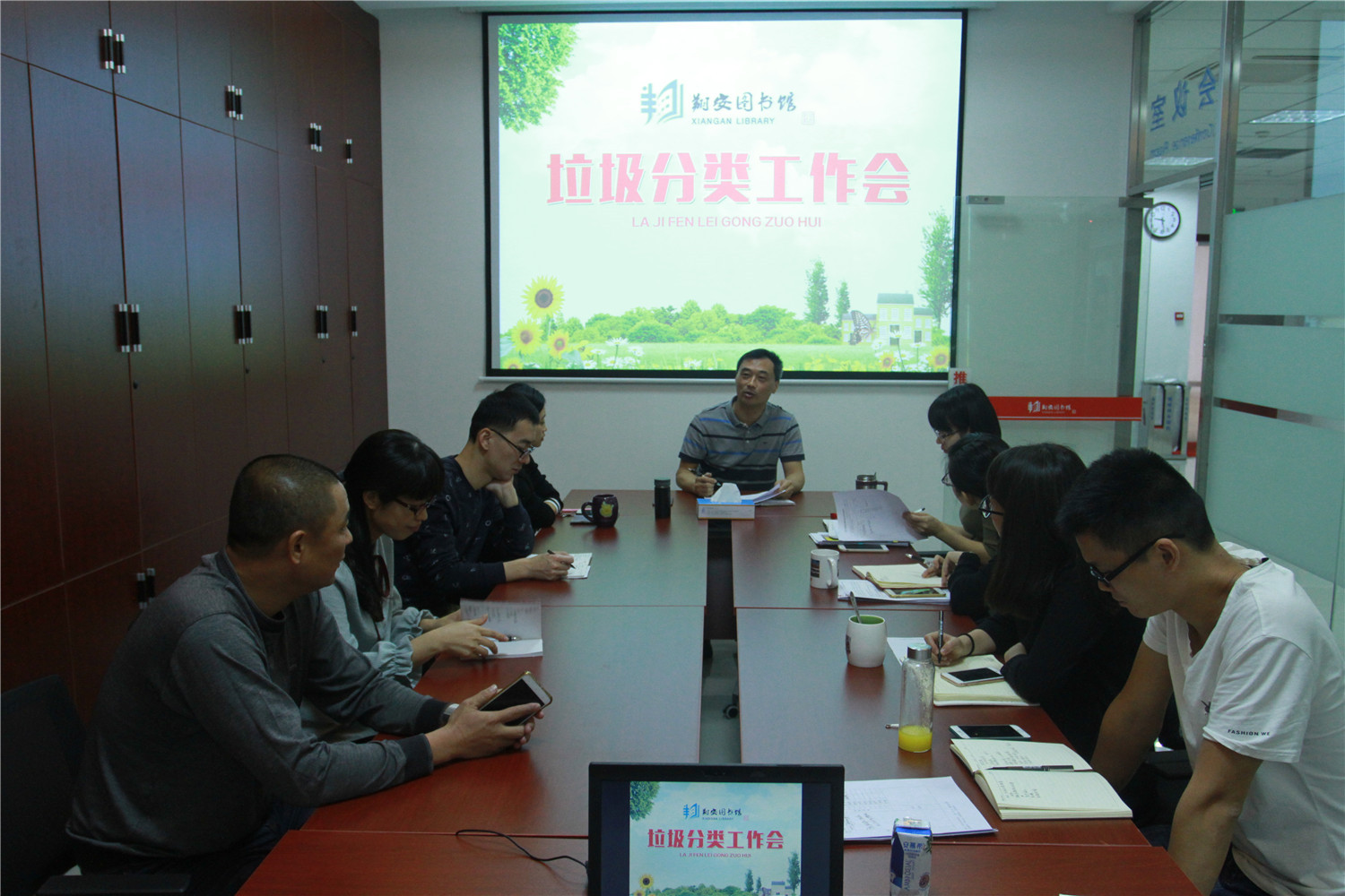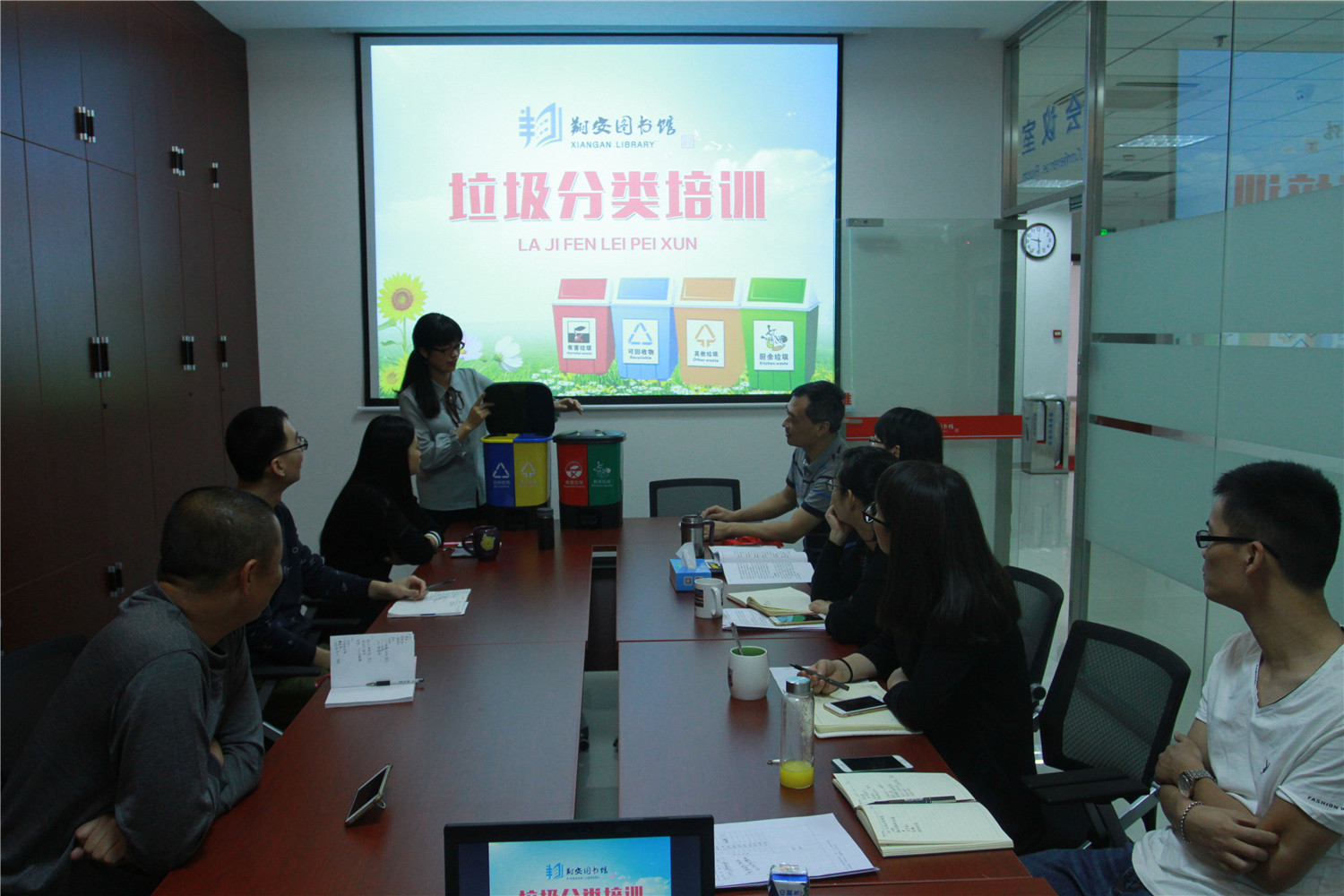 11月6日,翔安区图书馆组织员工举办“垃圾分类”工作会暨分类知识培训。