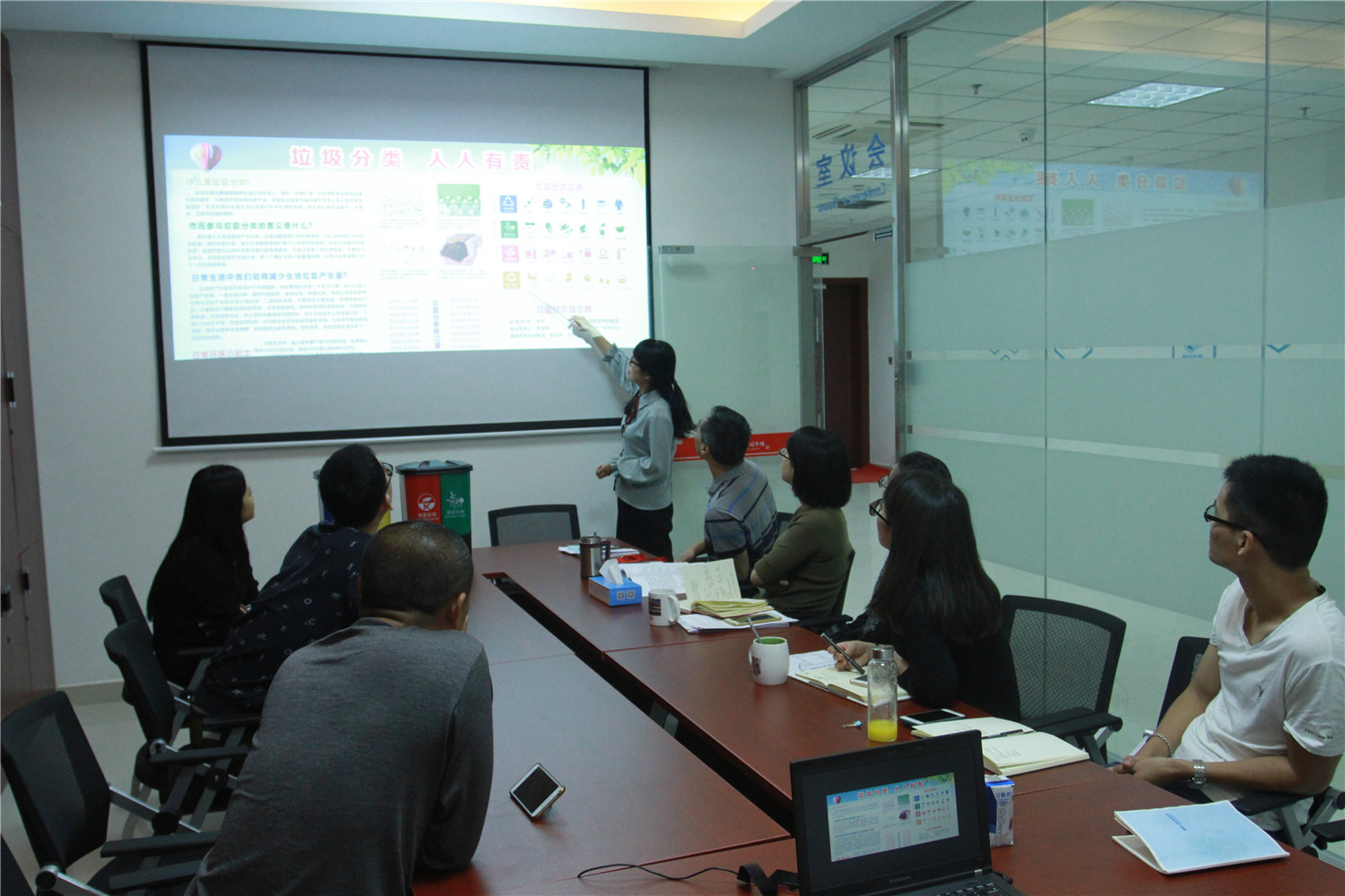 首先,由张胜峰馆长就做好垃圾分类工作,开展馆内垃圾分类整改,垃圾分类工作作出部署,要求全体工作人员要树立垃圾分类意识,按照《厦门经济特区生活垃圾分类管理办法》的要求,推动图书馆垃圾分类工作,营造垃圾分类的良好氛围。工作会结束后,由综合保障部方丽苹为馆内工作人员开展两场垃圾分类知识培训,她就什么是垃圾分类、垃圾分类指南、如何进行垃圾分类作了详细的培训。