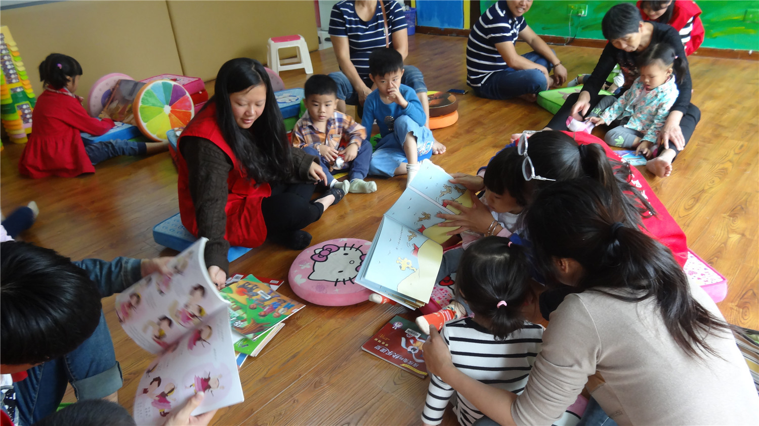 此次为小读者带来服务的是来自厦门海洋职业技术学院的志愿者老师,他们通过精心组织的绘本讲述、游戏互动、律动带领、亲子互动等小环节,跟现场小读者热情交流,分享快乐。