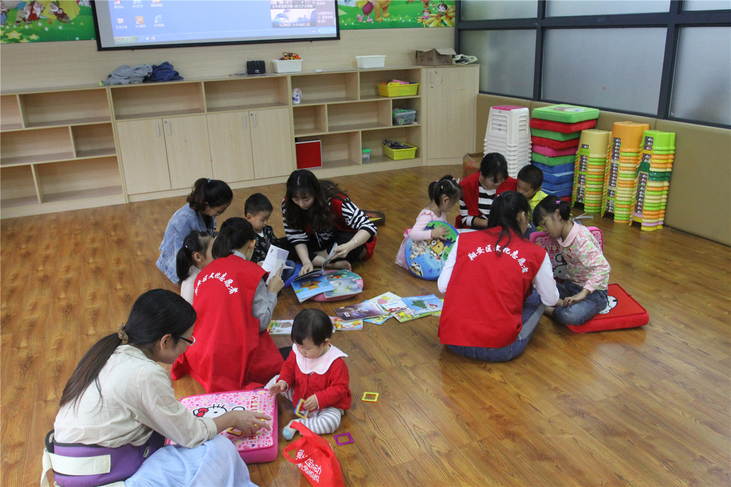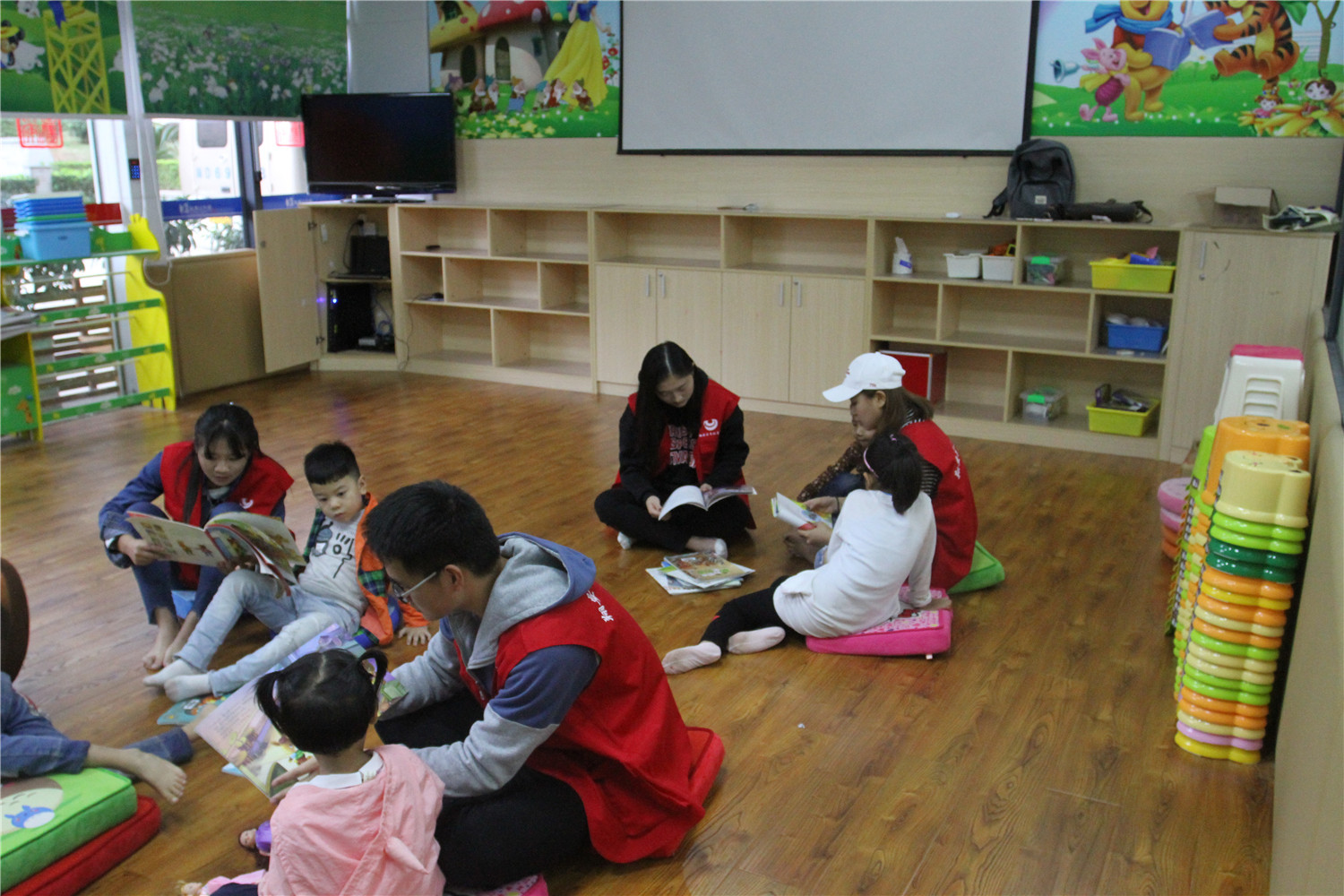 此次为小读者带来服务的是来自厦门海洋职业技术学院的志愿者老师,他们通过精心组织的绘本讲述、游戏互动、律动带领、亲子互动等小环节,跟现场小读者热情交流,分享快乐。