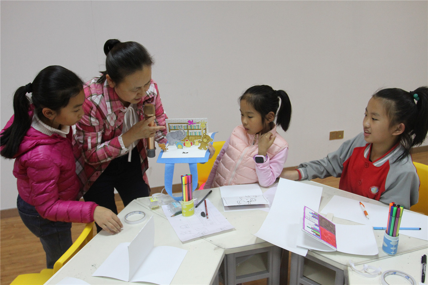 香橼老师首先带领小读者们品读了《图书馆老鼠》系列——《神秘的作家》的绘本故事,让他们体会到写作、友情、合作和探险带来的无限乐趣;解析了《神秘的图书馆》童话故事,并一对一地对他们的接龙创作进行写作指导;手工书制作环节,指导他们用无纺布围绕“神秘的图书馆”主题制作了立体无字书包书。通过活动,让他们更喜欢图书,珍惜图书,从阅读中汲取营养,在快乐中写作,为爱读书的小读者提供了学习锻炼的机会。