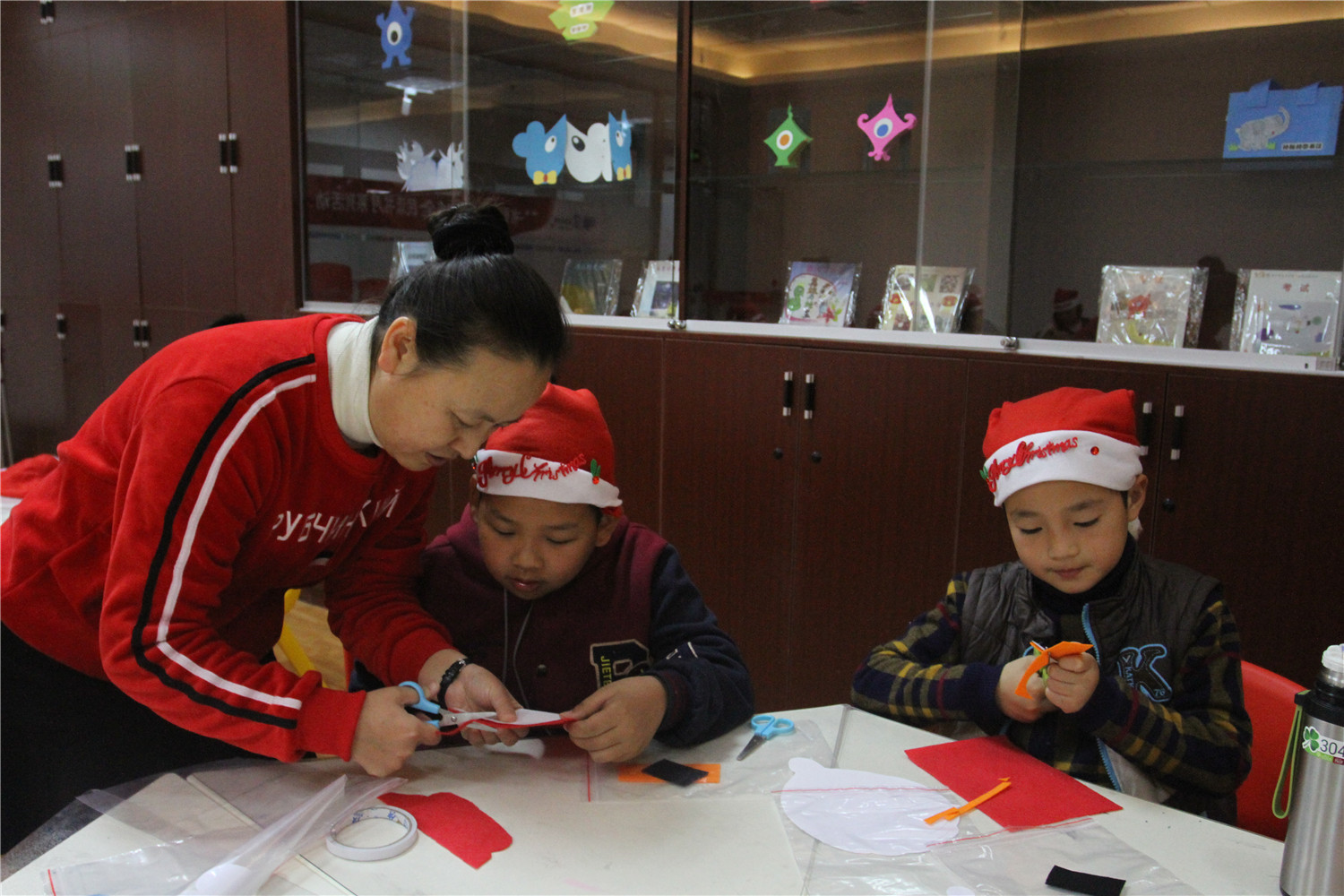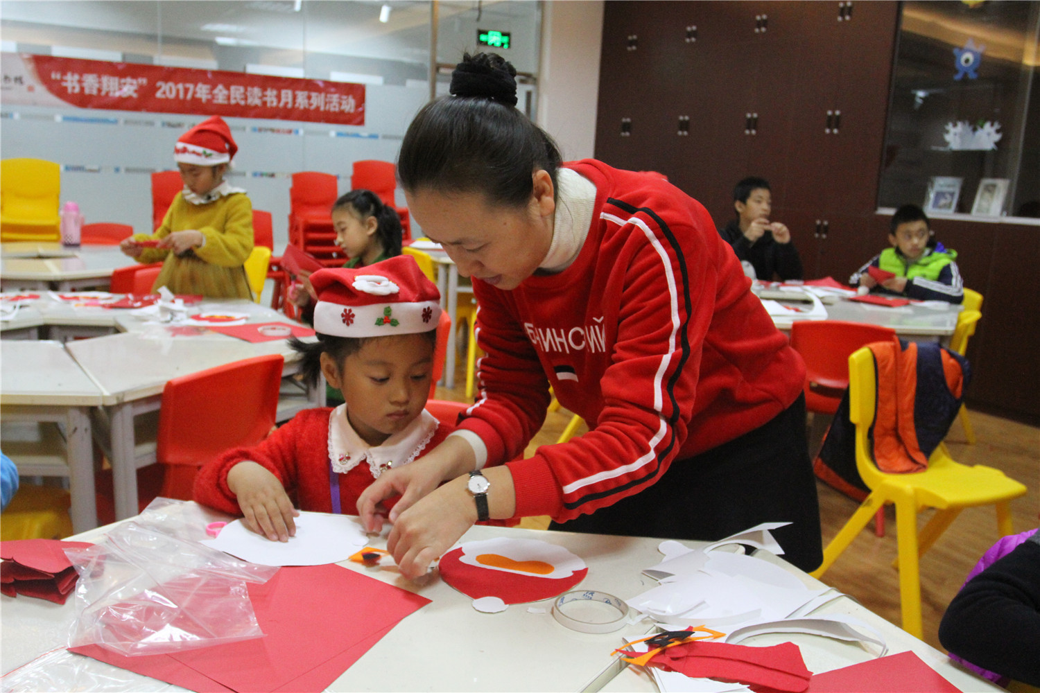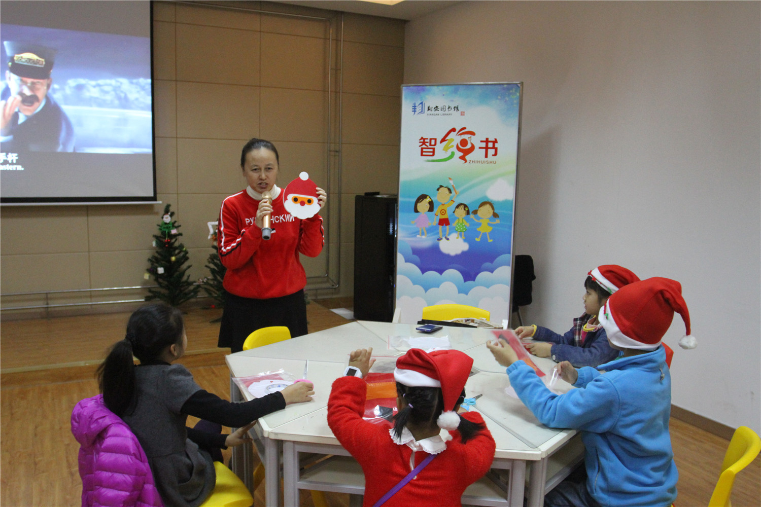 香橼老师让小读者和家长们一起观赏电影《极地特快》片断;给他们讲述了《杜比的圣诞节》的绘本故事;指导他们制作手工书——“圣诞老公公”,在快乐的时光中,感受到浓浓的圣诞氛围。通过活动,让他们更喜欢图书,珍惜图书,从阅读中汲取营养,在快乐中写作,为爱读书的小读者提供了学习锻炼的机会。