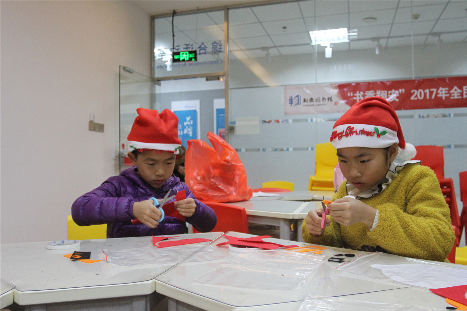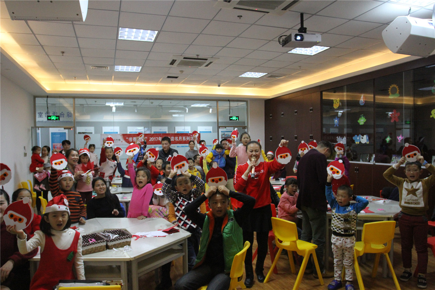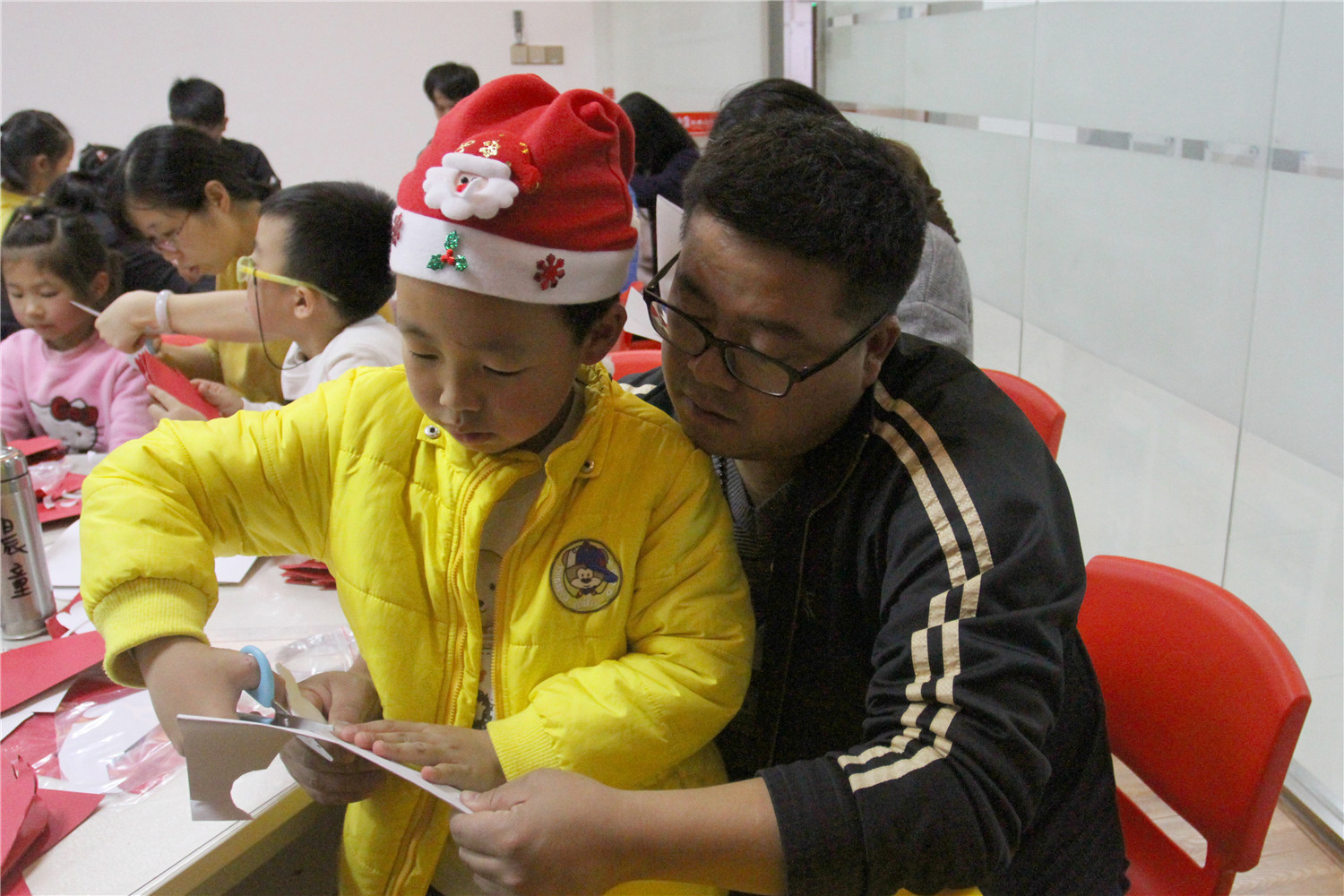 香橼老师让小读者和家长们一起观赏电影《极地特快》片断;给他们讲述了《杜比的圣诞节》的绘本故事;指导他们制作手工书——“圣诞老公公”,在快乐的时光中,感受到浓浓的圣诞氛围。通过活动,让他们更喜欢图书,珍惜图书,从阅读中汲取营养,在快乐中写作,为爱读书的小读者提供了学习锻炼的机会。